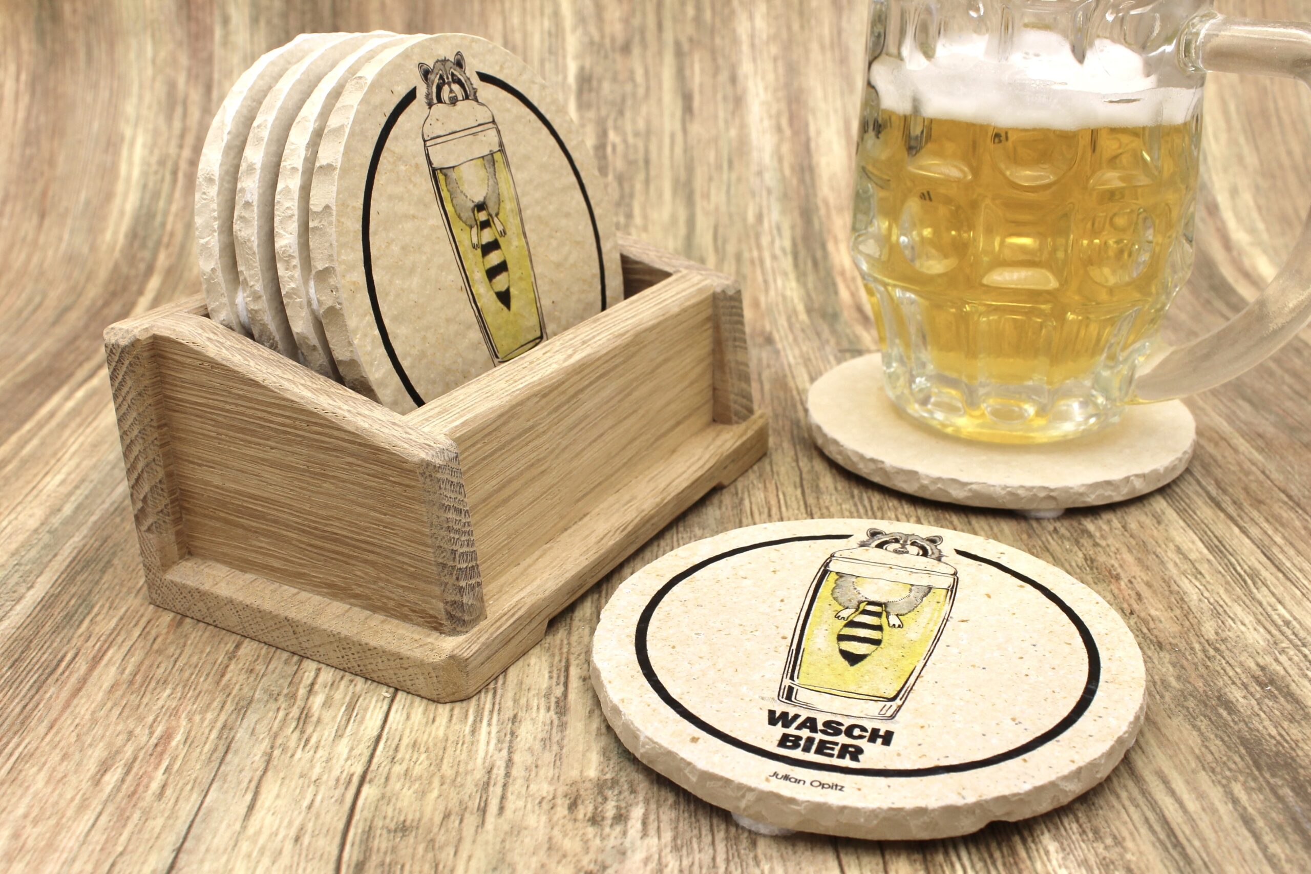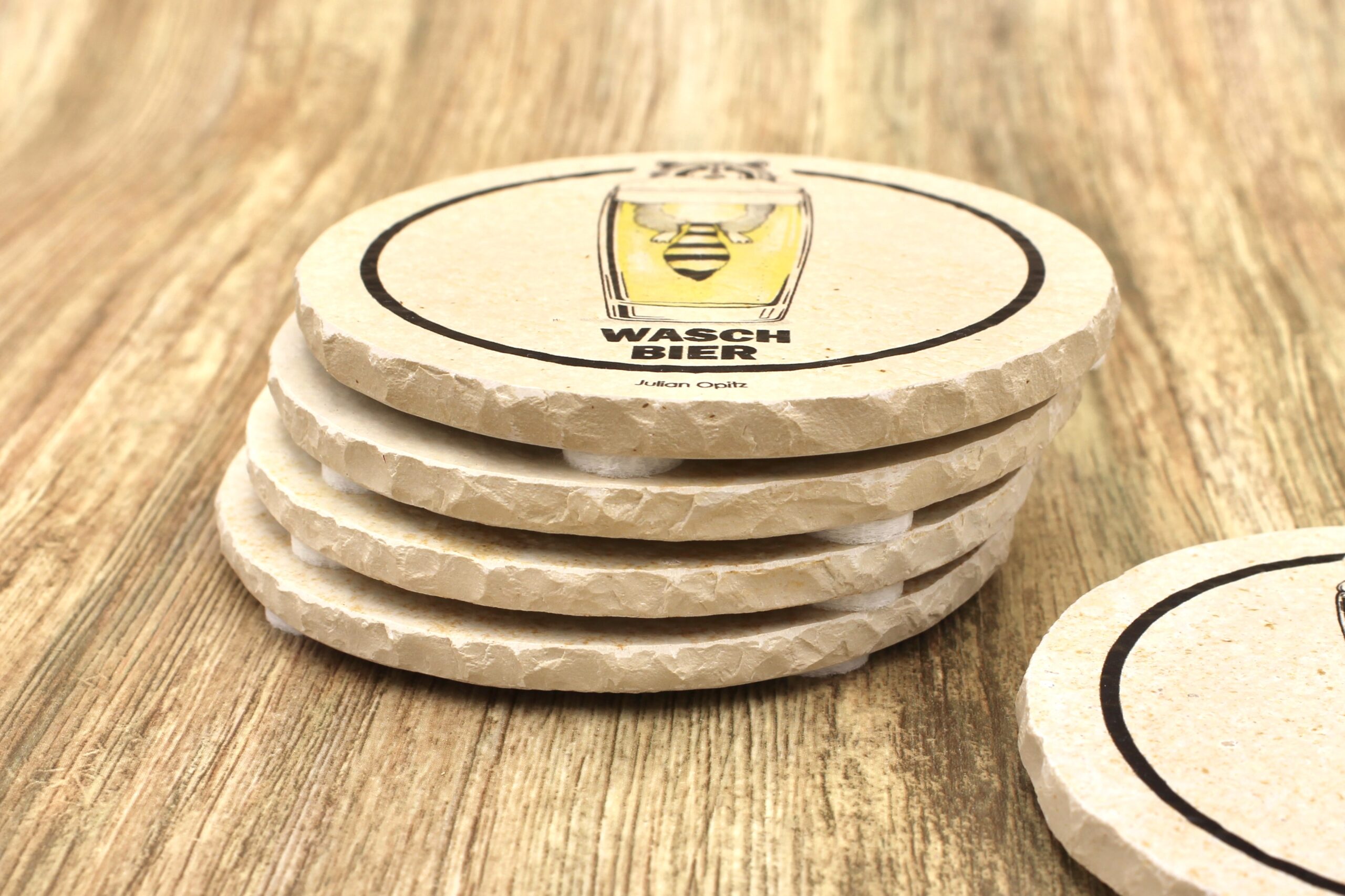 Untersetzer aus Naturstein mit dem Motiv „Wasch Bier“. ✓ Dein Fützl: perfekt als Geschenk & Fanartikel & für Sammler ✓ Echt biologisch: Aus Solnhofer Naturstein handgemacht in Bayern ➨ Jetzt bestellen!