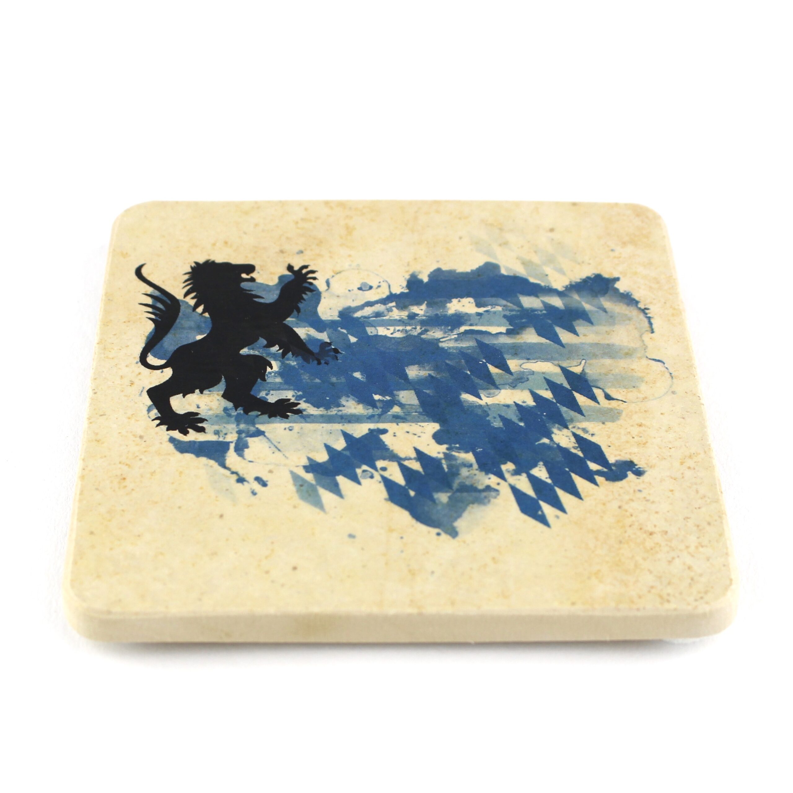 Untersetzer aus Naturstein mit dem Motiv „Bayernsplash“. ✓ Dein Fützl: perfekt als Geschenk & Fanartikel & für Sammler ✓ Echt biologisch: Aus Solnhofer Naturstein handgemacht in Bayern ➨ Jetzt bestellen!