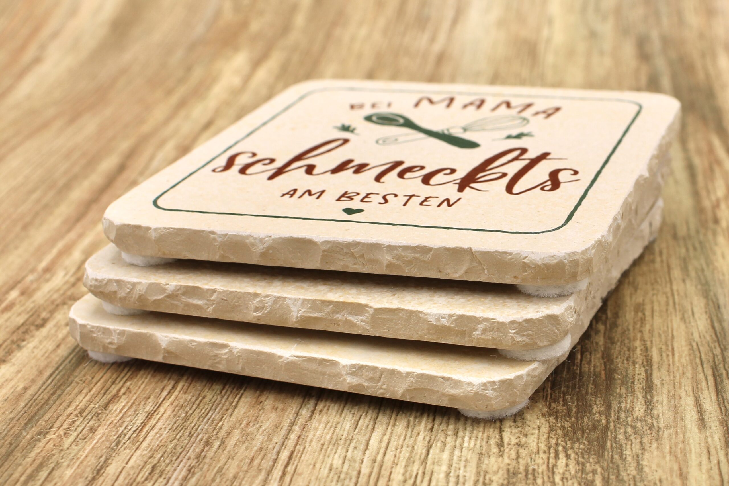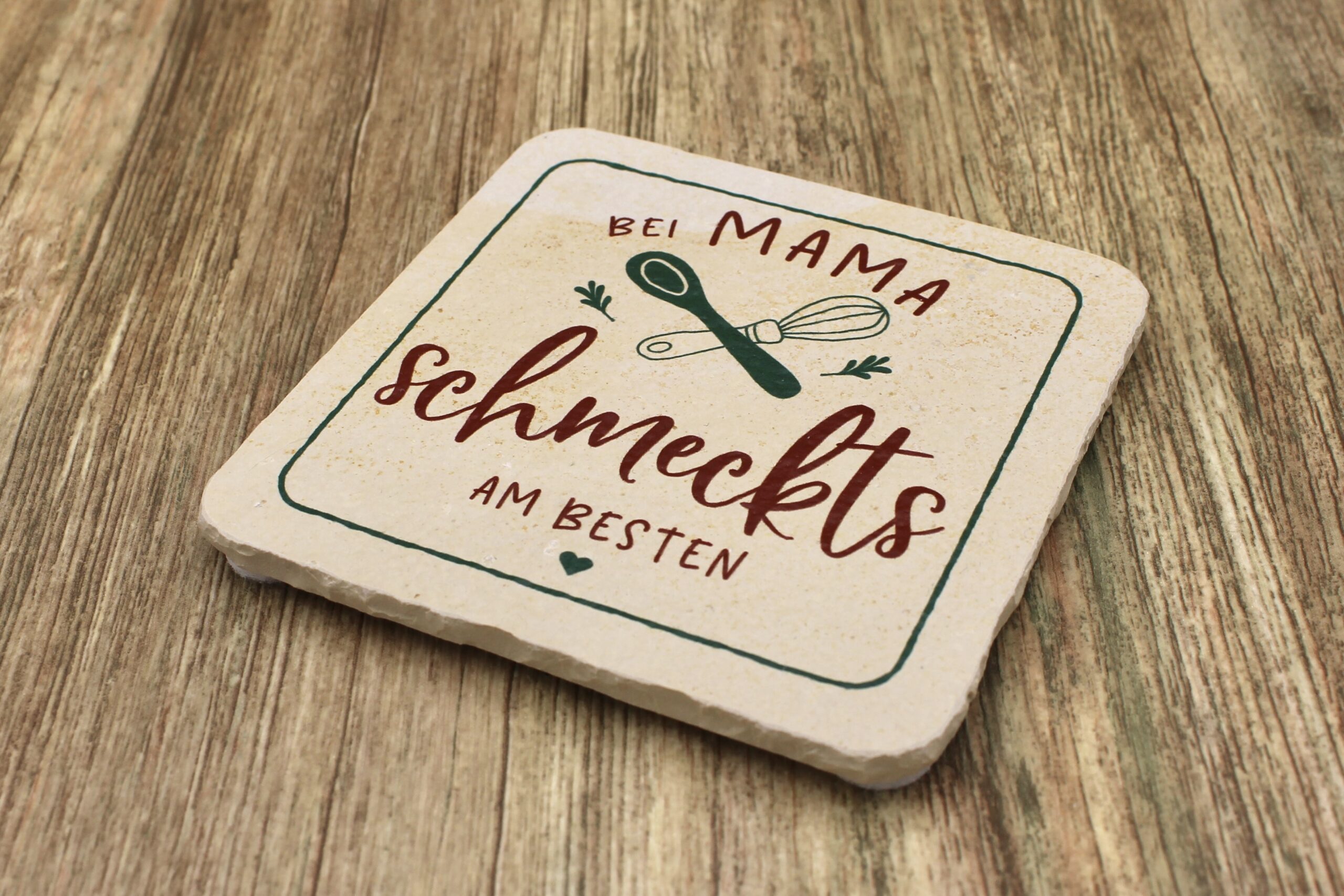 Untersetzer aus Naturstein mit dem Motiv „Bei Mama Schmeckts am Besten“ ✓ Dein Fützl: perfekt als Geschenk & Fanartikel & für Sammler ✓ Echt biologisch: Aus Solnhofer Naturstein handgemacht in Bayern ➨ Jetzt bestellen!