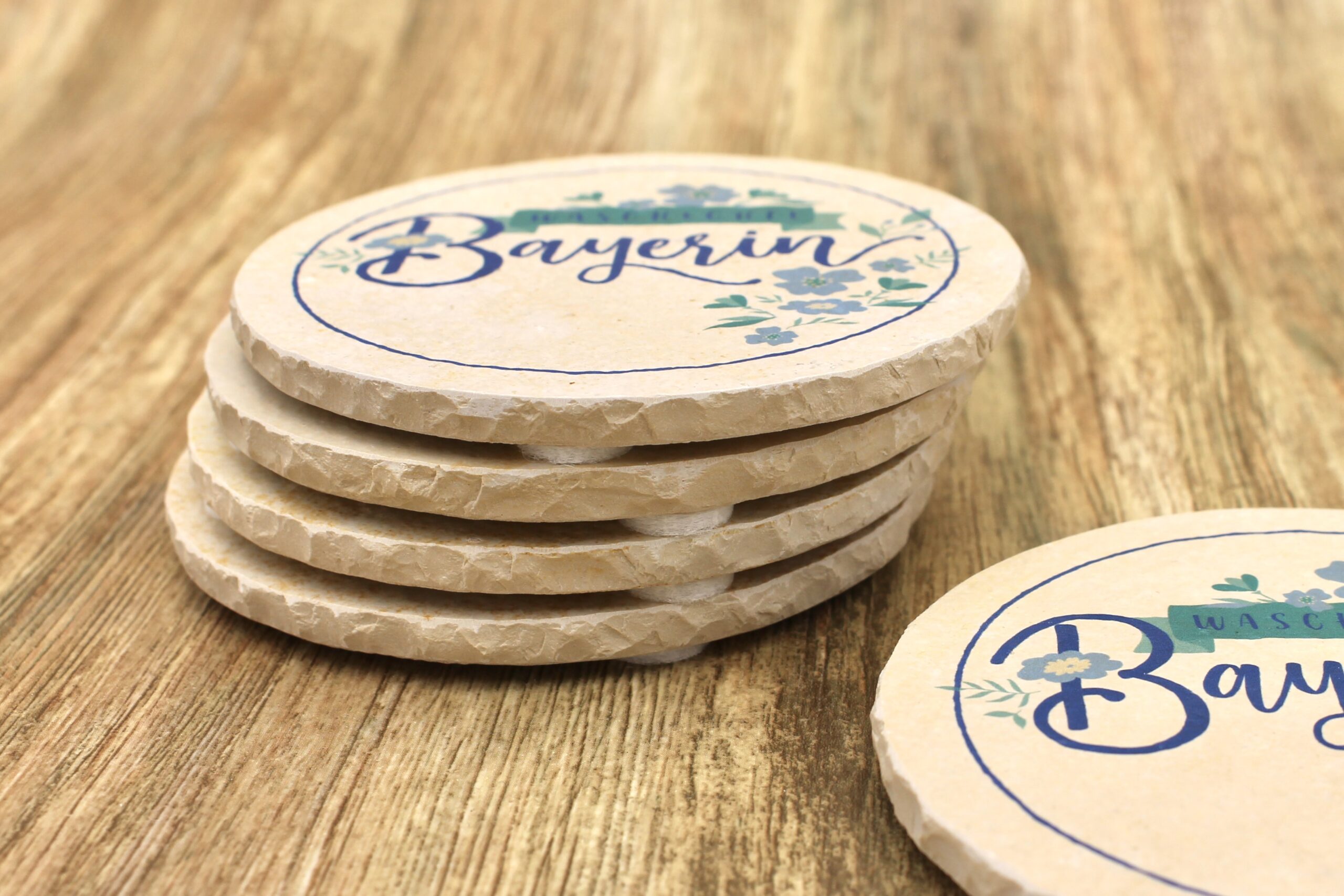 Untersetzer aus Naturstein mit dem Motiv „Blumenmaid“ ✓ Dein Fützl: perfekt als Geschenk & Fanartikel & für Sammler ✓ Echt biologisch: Aus Solnhofer Naturstein handgemacht in Bayern ➨ Jetzt bestellen!