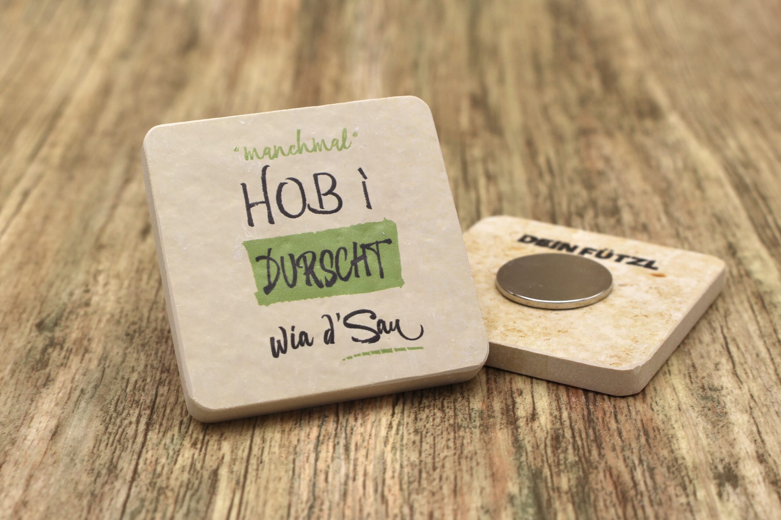 Magnet für den Kühlschrank aus Stein mit dem Motiv „Durscht“ ✓ Dein Fützl: perfekt als Geschenk & Fanartikel ✓ Echt nachhaltig: Aus Solnhofer Naturstein handgemacht in Bayern ➨ Jetzt bestellen!