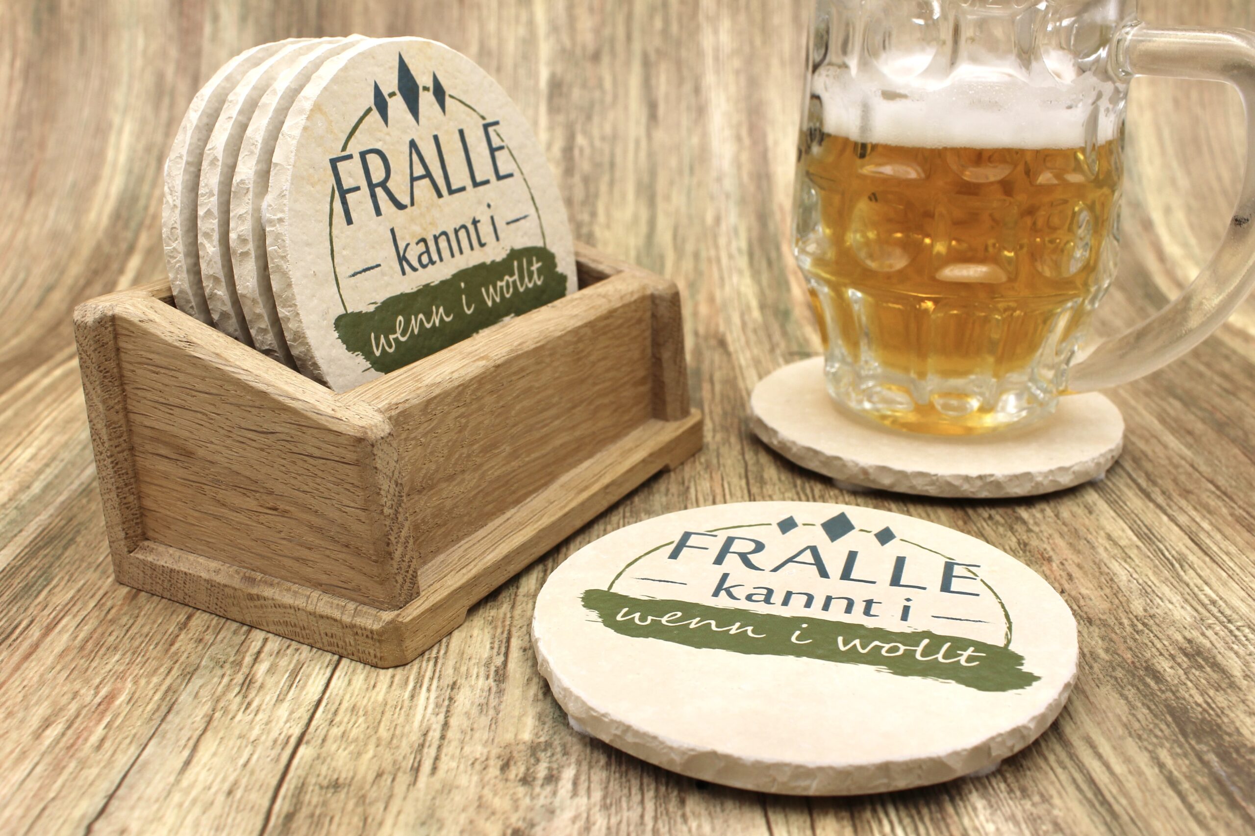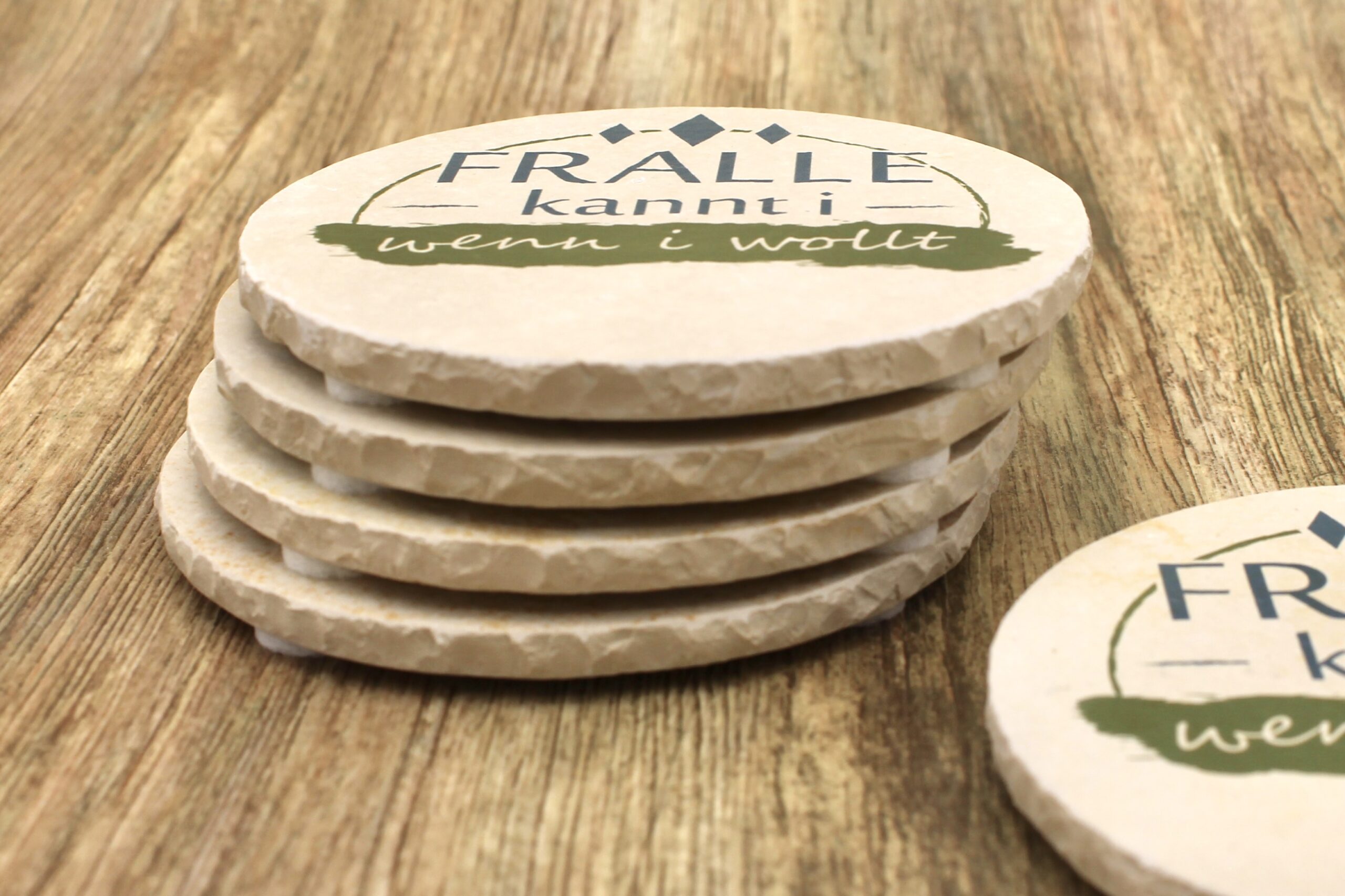 Untersetzer aus Naturstein mit dem Motiv „Fralle Kannt I“ ✓ Dein Fützl: perfekt als Geschenk & Fanartikel & für Sammler ✓ Echt biologisch: Aus Solnhofer Naturstein handgemacht in Bayern ➨ Jetzt bestellen!