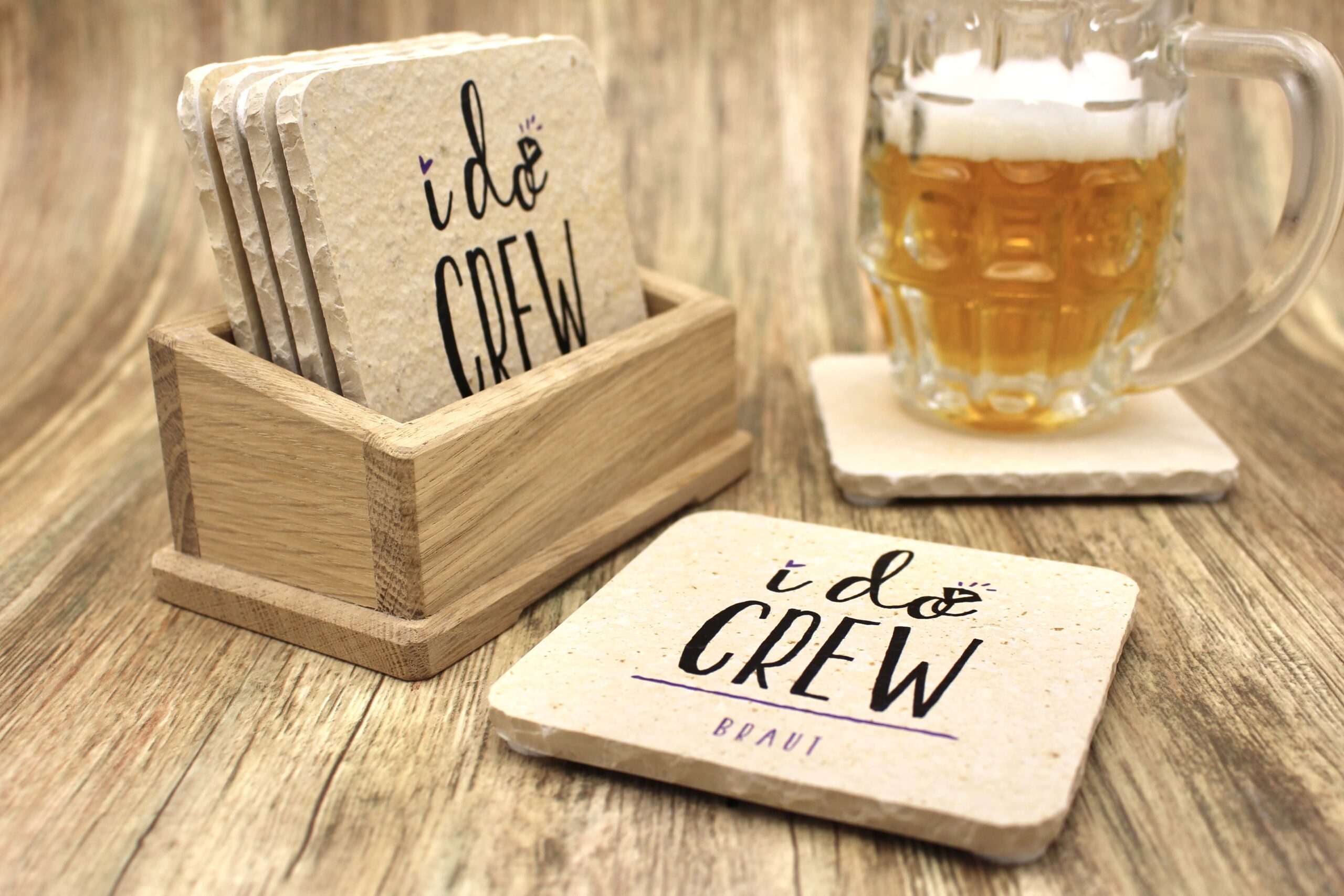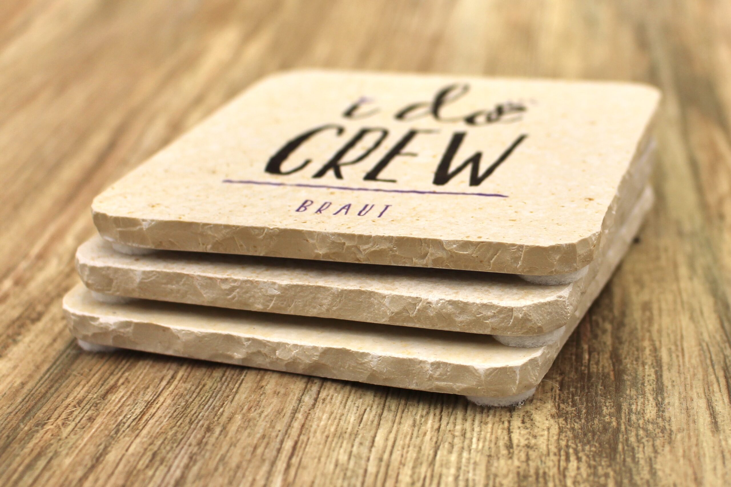 Untersetzer aus Naturstein mit dem Motiv „I do Crew“ ✓ Dein Fützl: ein persönliches Geschenk zur Hochzeit ✓ Echt biologisch: Aus Solnhofer Naturstein handgemacht in Bayern ➨ Jetzt bestellen!