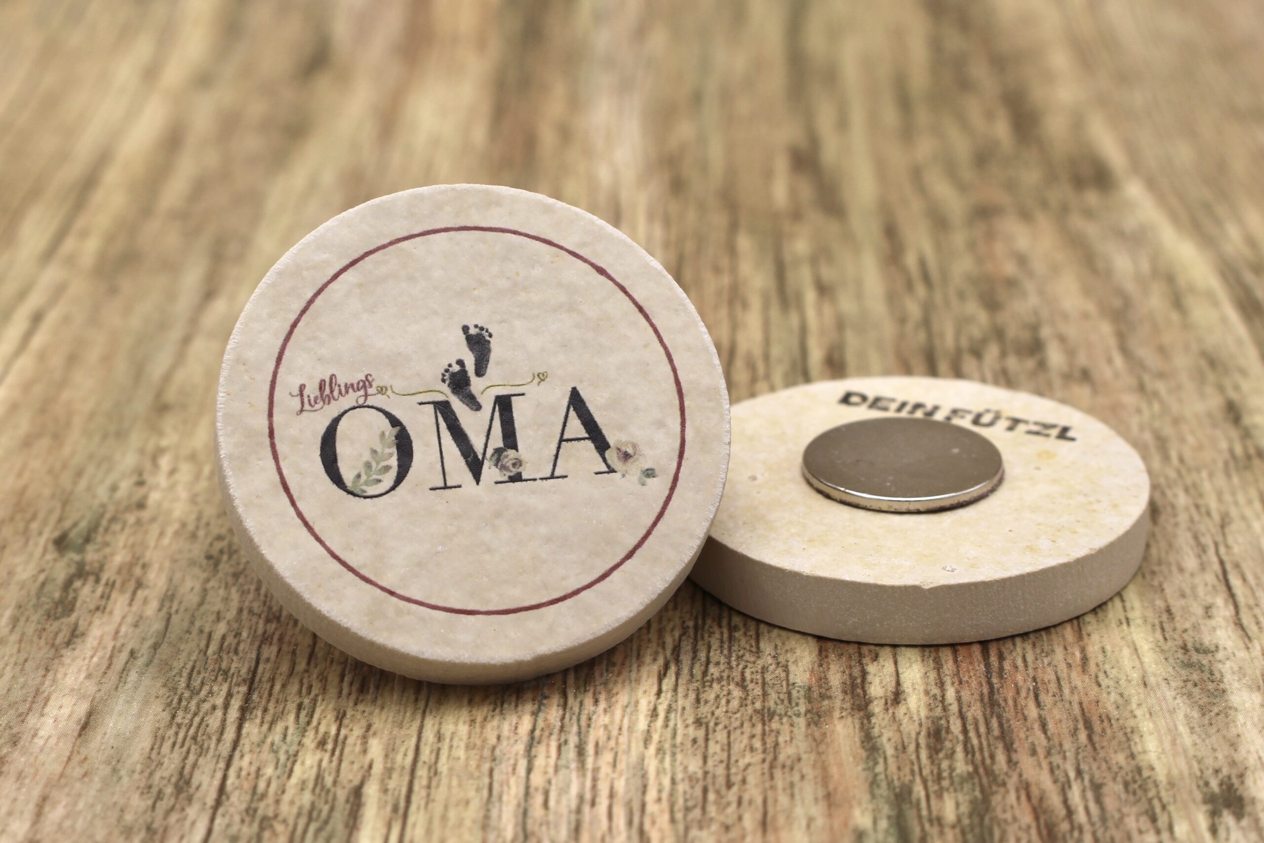 Magnet für den Kühlschrank aus Stein mit dem Motiv „Liebling Oma“ ✓ Dein Fützl: perfekt als Geschenk & Fanartikel ✓ Echt nachhaltig: Aus Solnhofer Naturstein handgemacht in Bayern ➨ Jetzt bestellen!