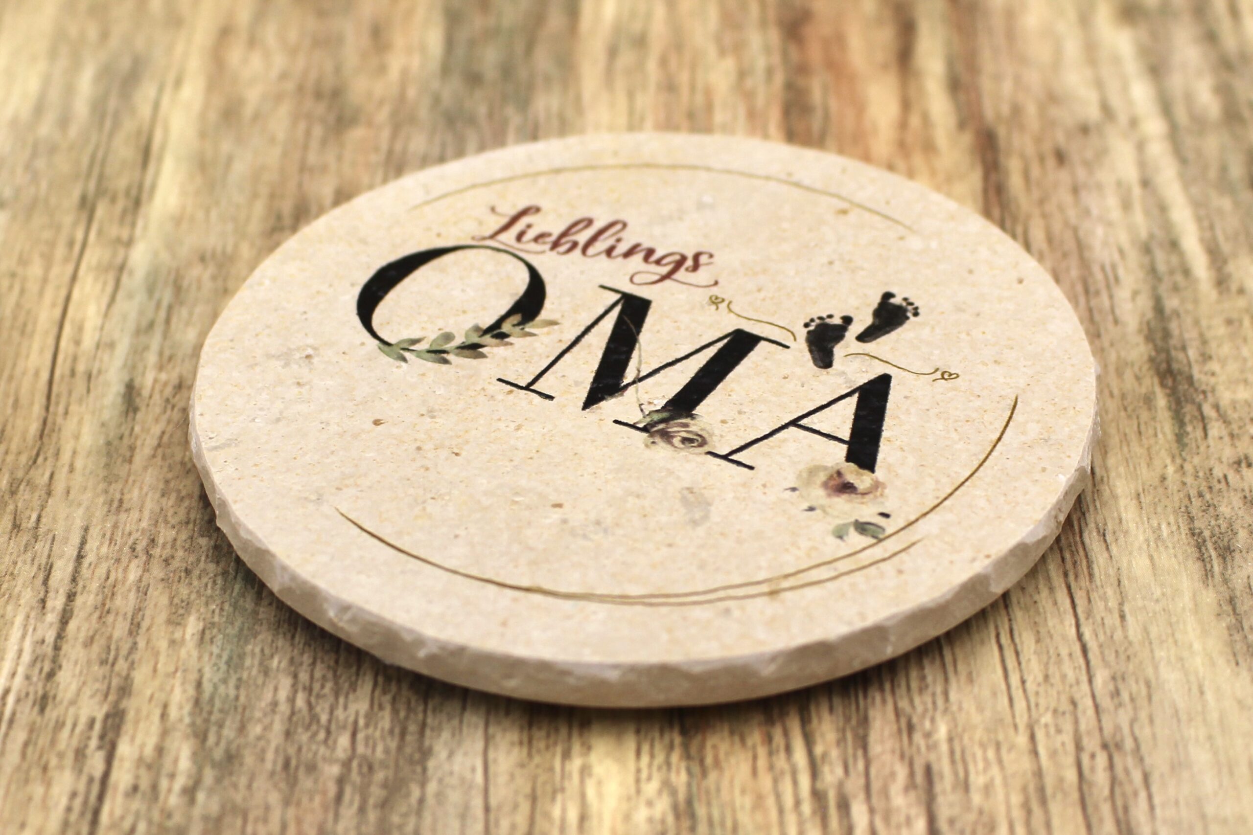 Untersetzer aus Naturstein mit dem Motiv „Lieblingsoma“ ✓ Dein Fützl: perfekt als Geschenk & Fanartikel & für Sammler ✓ Echt biologisch: Aus Solnhofer Naturstein handgemacht in Bayern ➨ Jetzt bestellen!