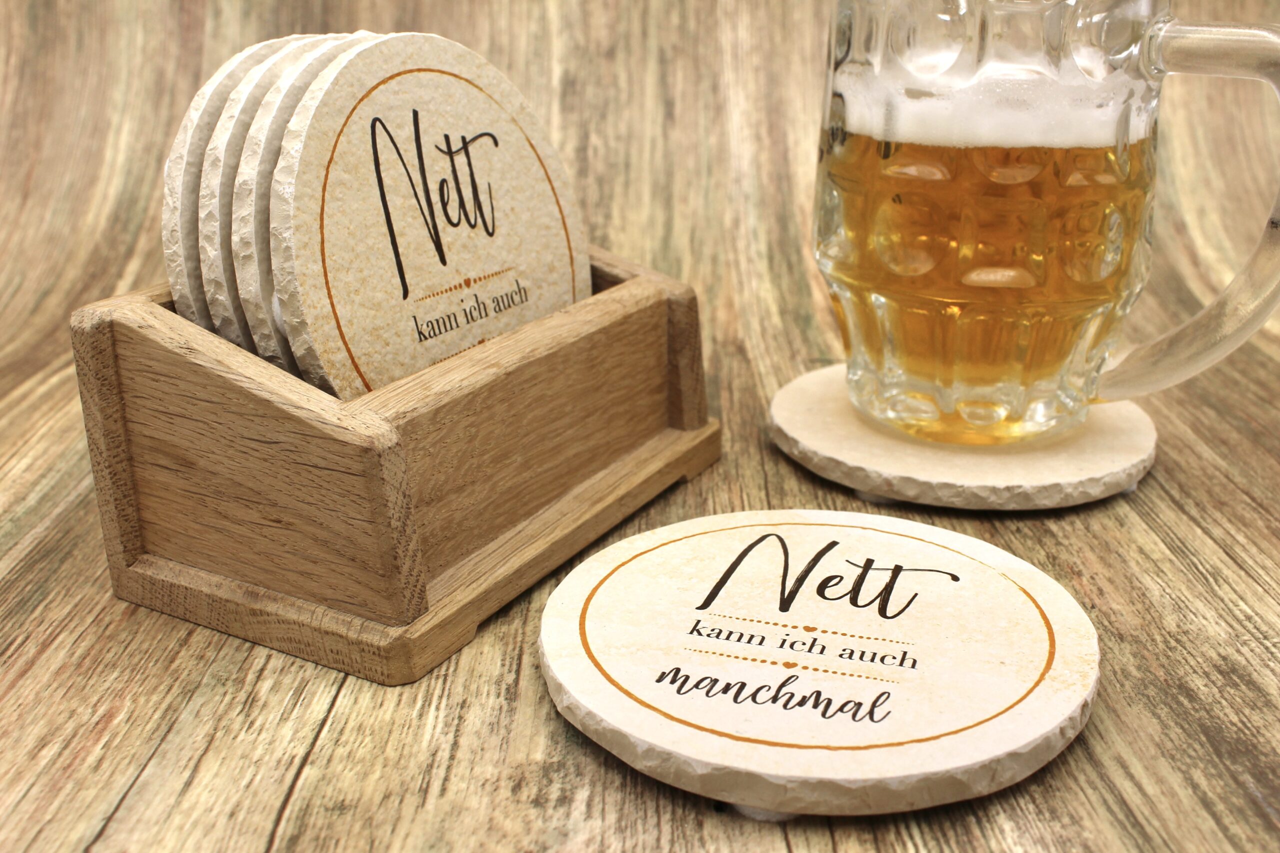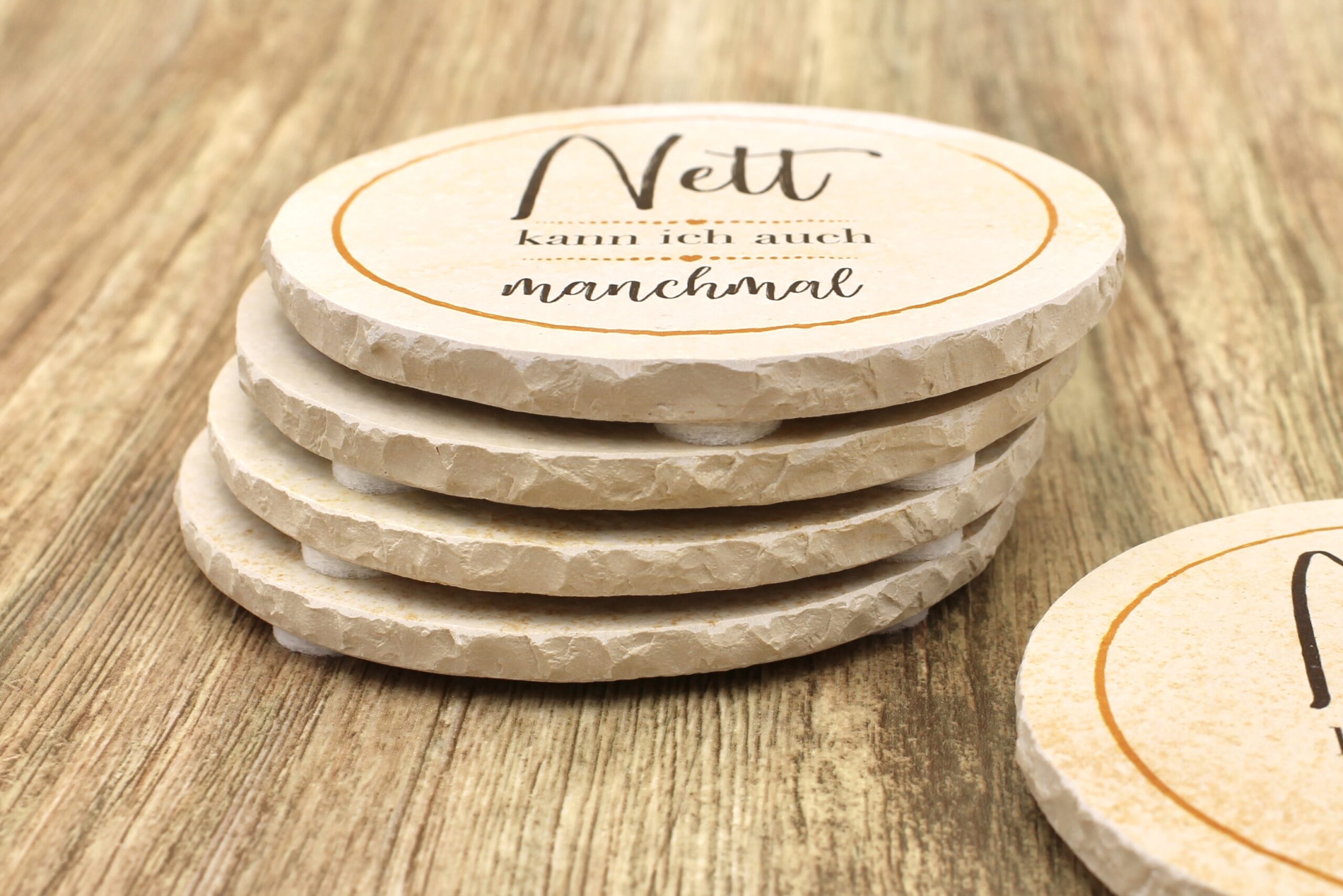 Untersetzer aus Naturstein mit dem Motiv „Nett kann ich auch“ ✓ Dein Fützl: perfekt als Geschenk & Fanartikel & für Sammler ✓ Echt biologisch: Aus Solnhofer Naturstein handgemacht in Bayern ➨ Jetzt bestellen!