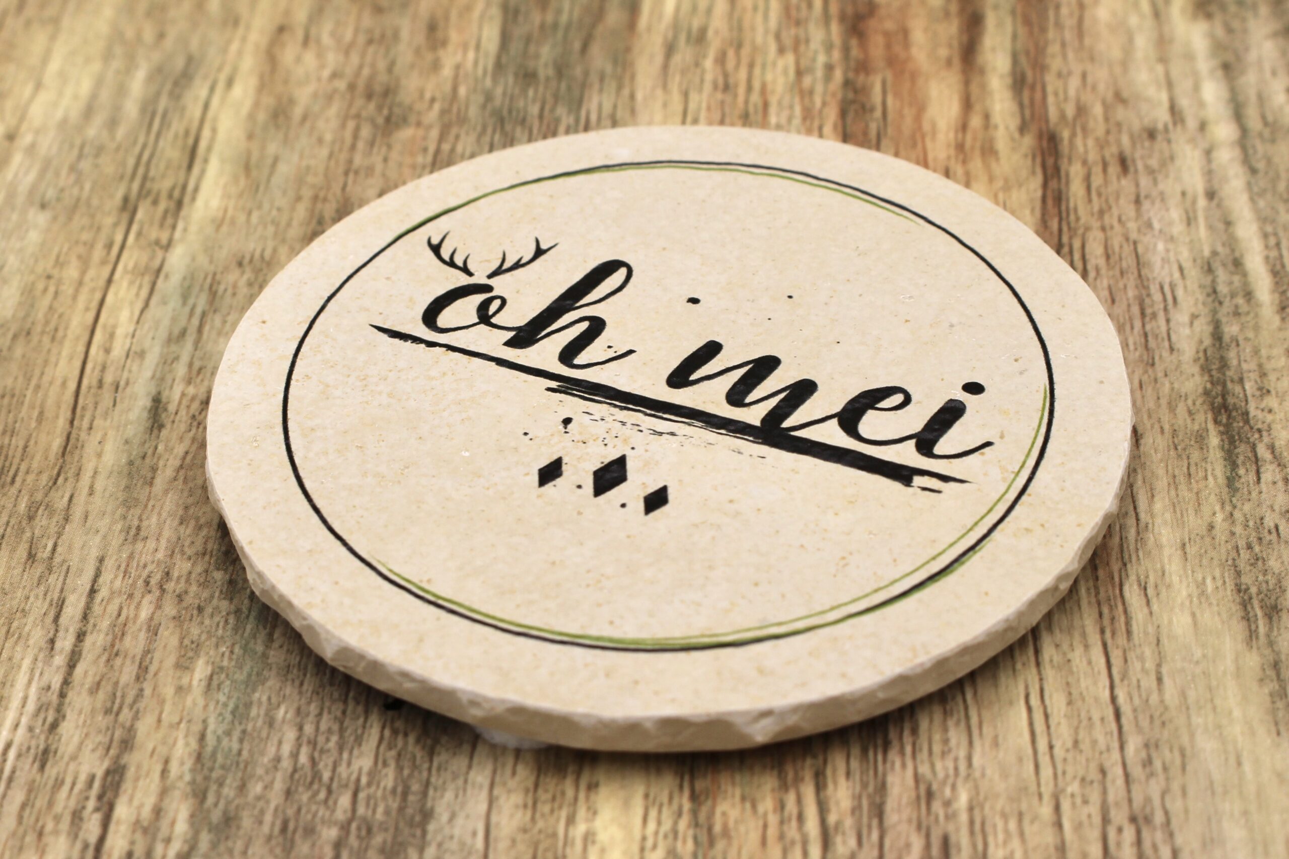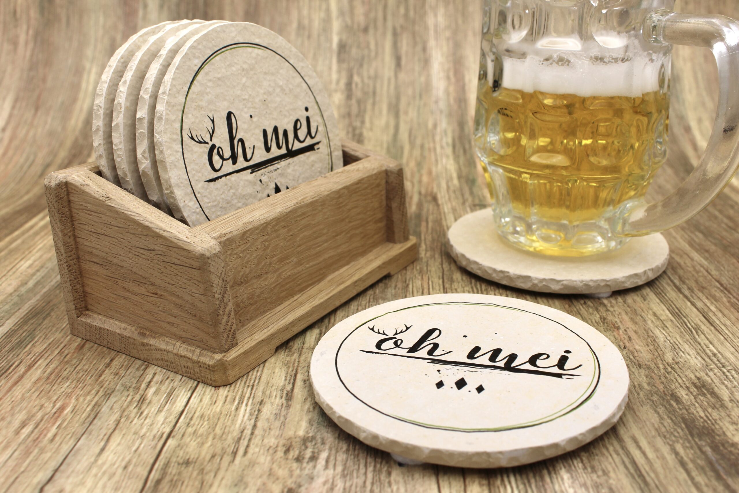 Untersetzer aus Naturstein mit dem Motiv „Oh mei“ ✓ Dein Fützl: perfekt als Geschenk & Fanartikel & für Sammler ✓ Echt biologisch: Aus Solnhofer Naturstein handgemacht in Bayern ➨ Jetzt bestellen!