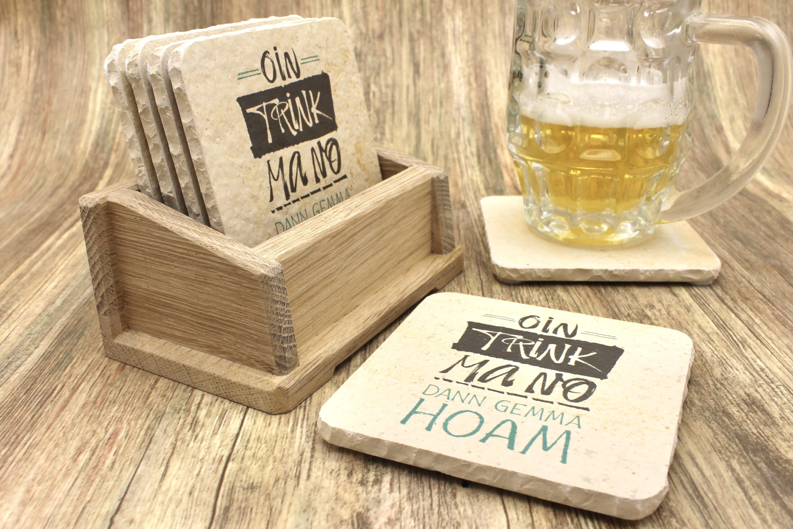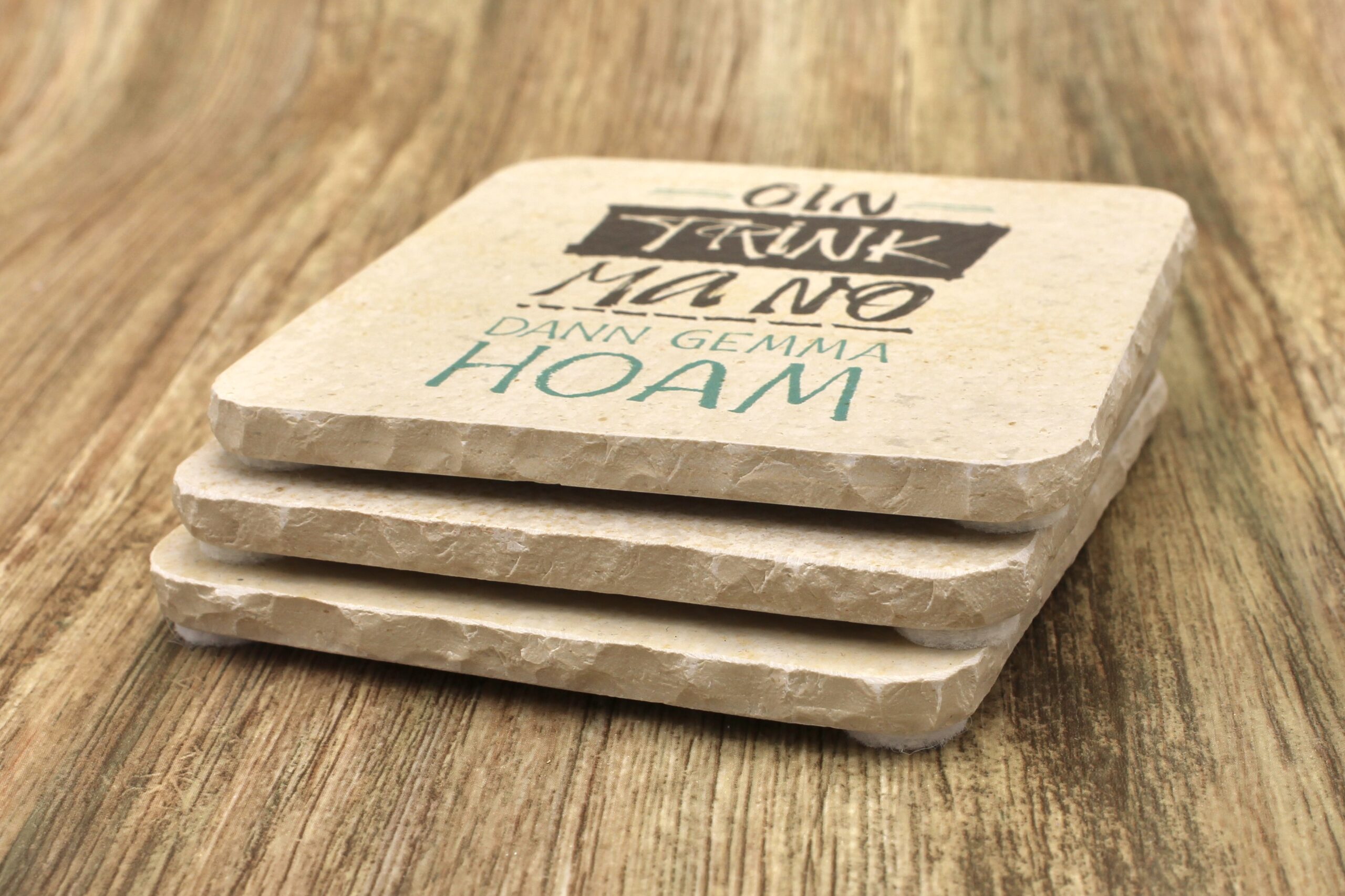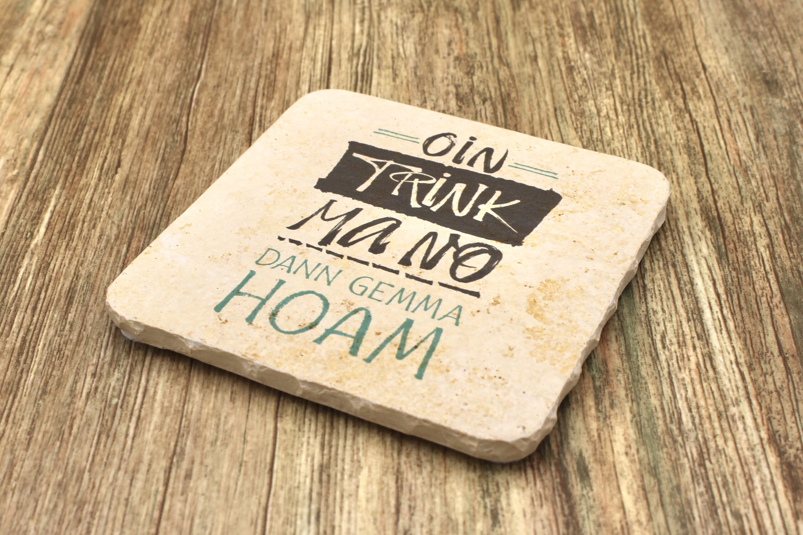 Untersetzer aus Naturstein mit dem Motiv „Oin trink ma no“. ✓ Dein Fützl: perfekt als Geschenk & Fanartikel & für Sammler ✓ Echt biologisch: Aus Solnhofer Naturstein handgemacht in Bayern ➨ Jetzt bestellen!