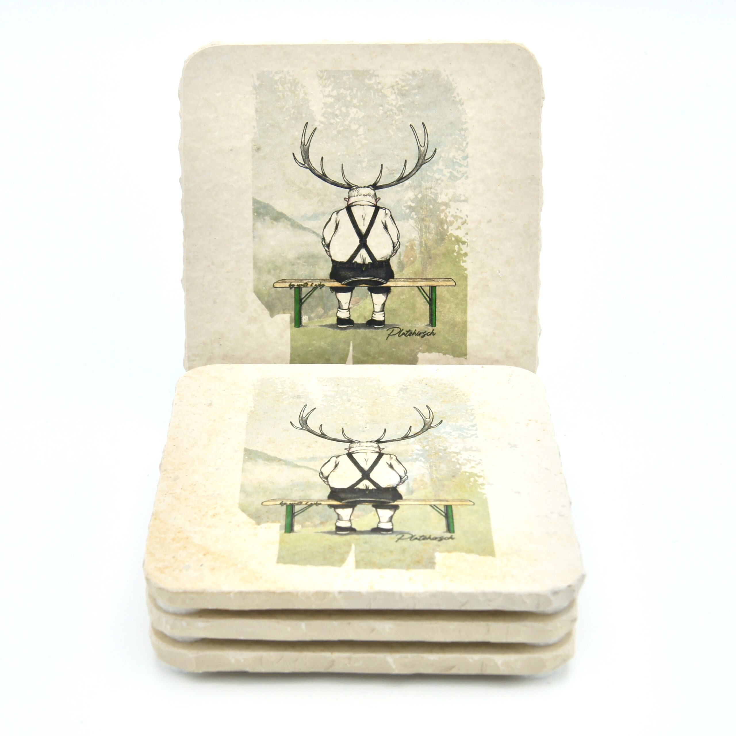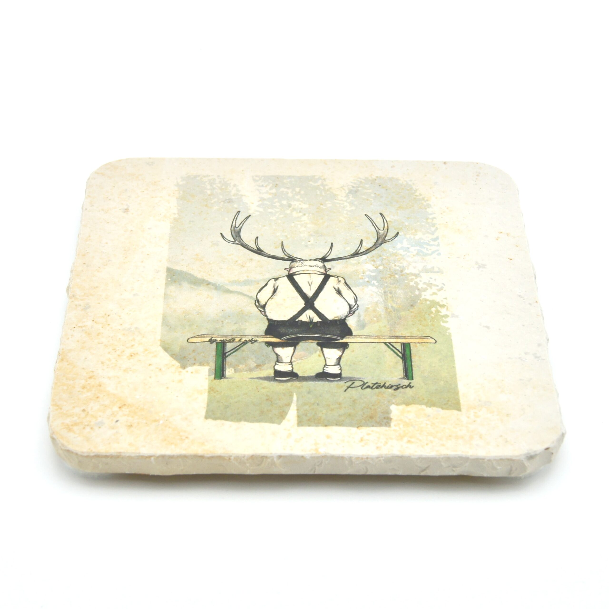 Untersetzer aus Naturstein mit dem Motiv „Platzhirsch“ ✓ Dein Fützl: perfekt als Geschenk & Fanartikel & für Sammler ✓ Echt biologisch: Aus Solnhofer Naturstein handgemacht in Bayern ➨ Jetzt bestellen!