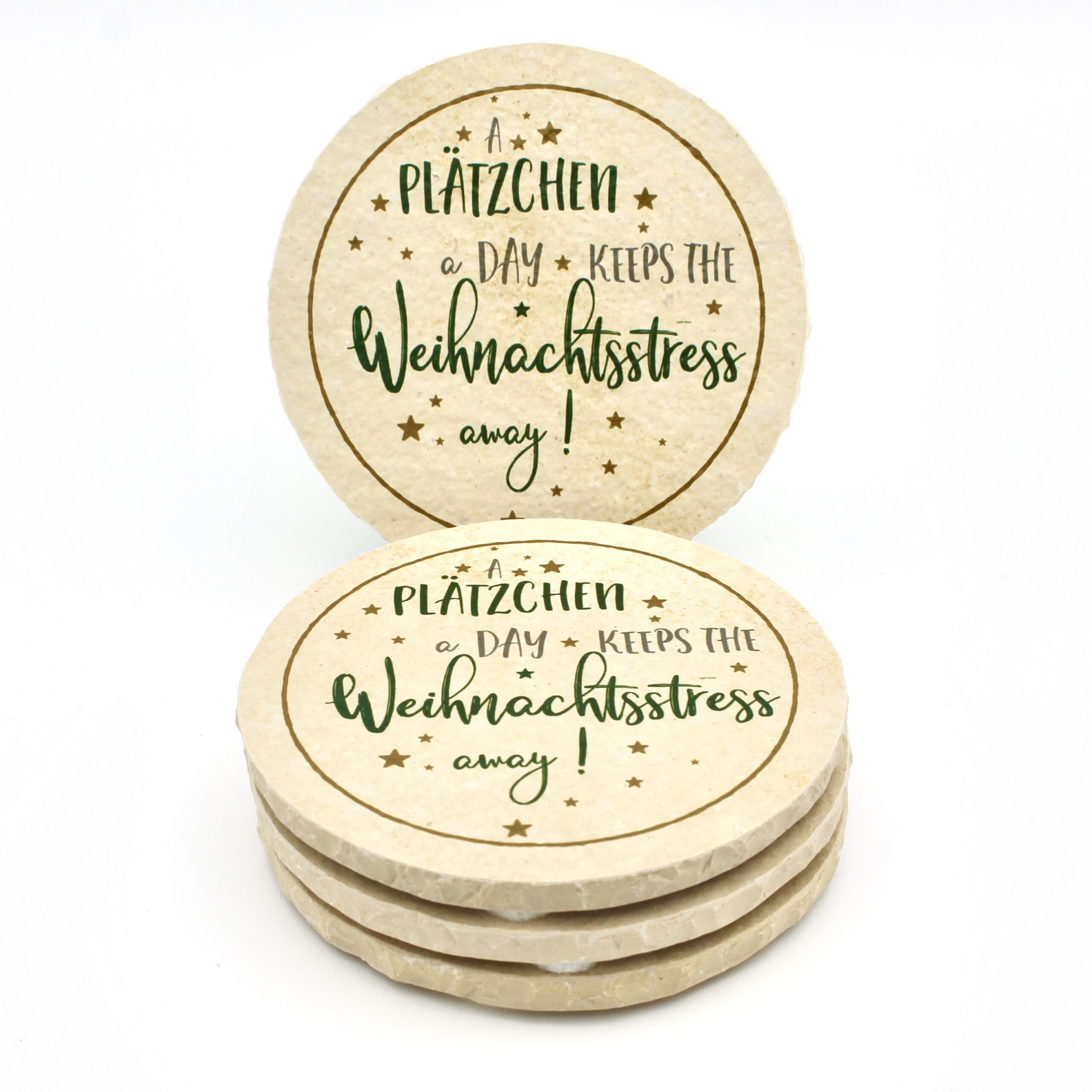 Untersetzer aus Naturstein mit dem Motiv „Weihnachtsstress“ ✓ Dein Fützl: perfekt als Geschenk & Fanartikel & für Sammler ✓ Echt biologisch: Aus Solnhofer Naturstein handgemacht in Bayern ➨ Jetzt bestellen!