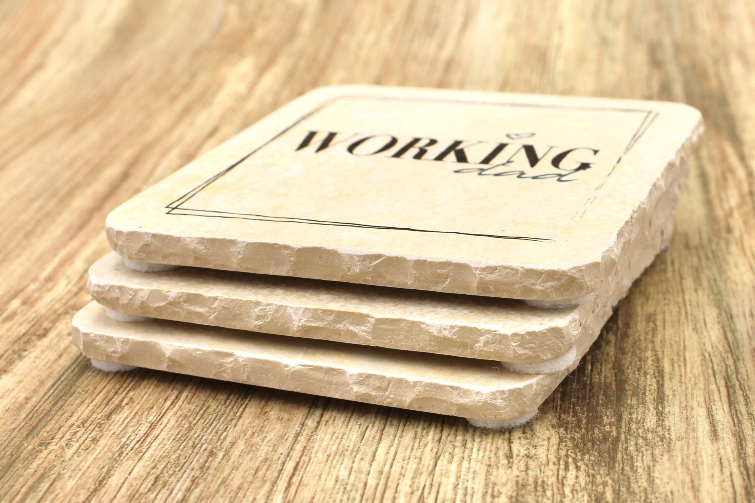 Untersetzer aus Naturstein mit dem Motiv „Working Dad“ ✓ Dein Fützl: perfekt als Geschenk & Fanartikel & für Sammler ✓ Echt biologisch: Aus Solnhofer Naturstein handgemacht in Bayern ➨ Jetzt bestellen!