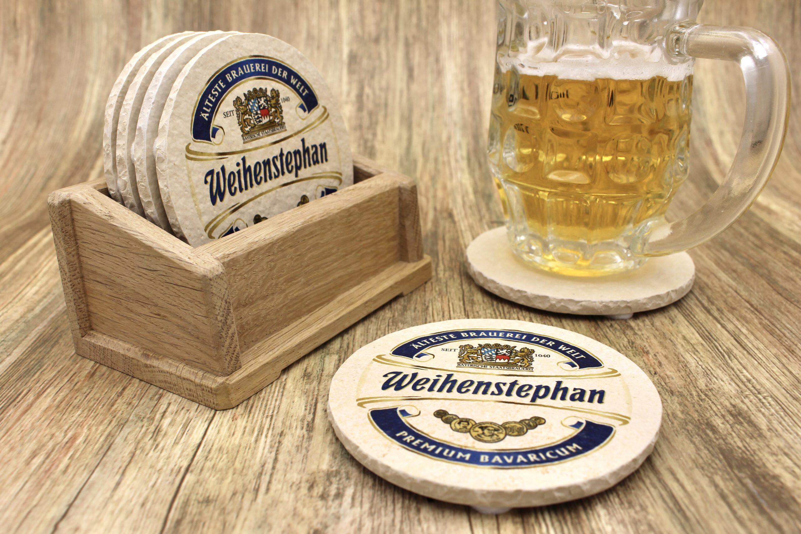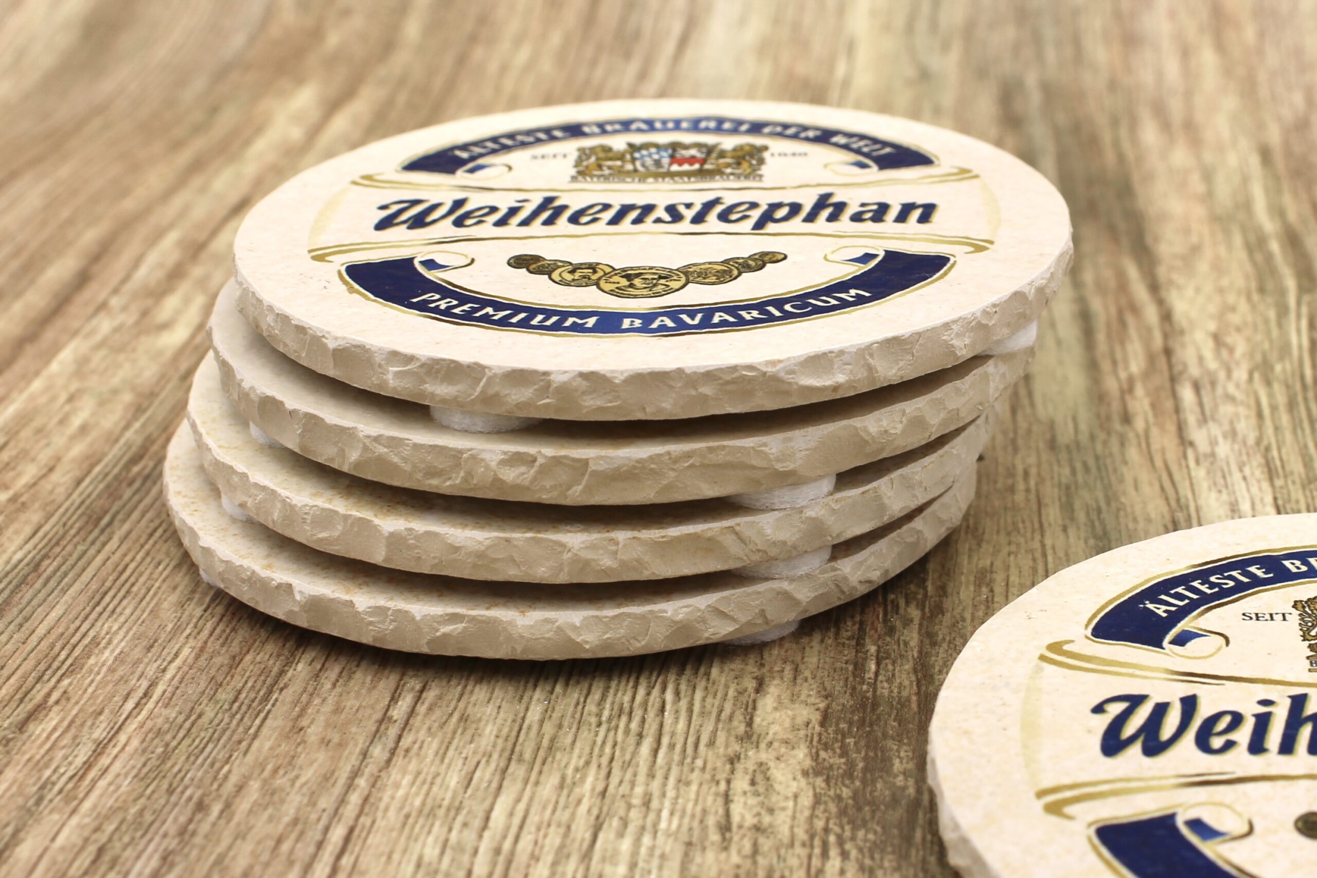 Bierdeckel aus Naturstein mit Logo der bayerischen Staatsbrauerei Weihenstephan ✓ Dein Fützl: perfekt als Geschenk & Fanartikel & für Sammler ✓ Echt biologisch: Aus Solnhofer Naturstein handgemacht in Bayern ➨ Jetzt bestellen!