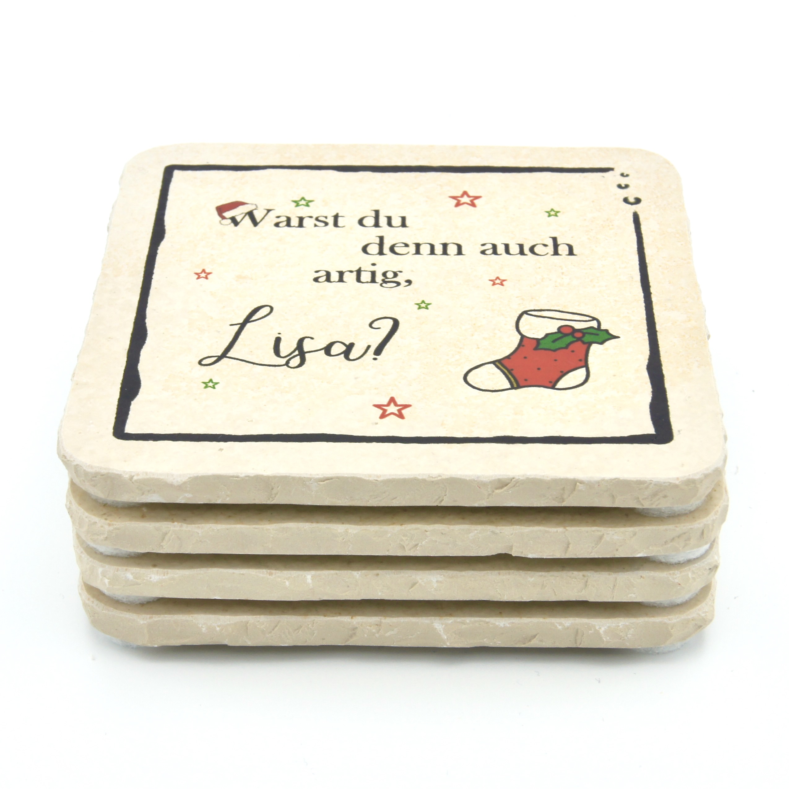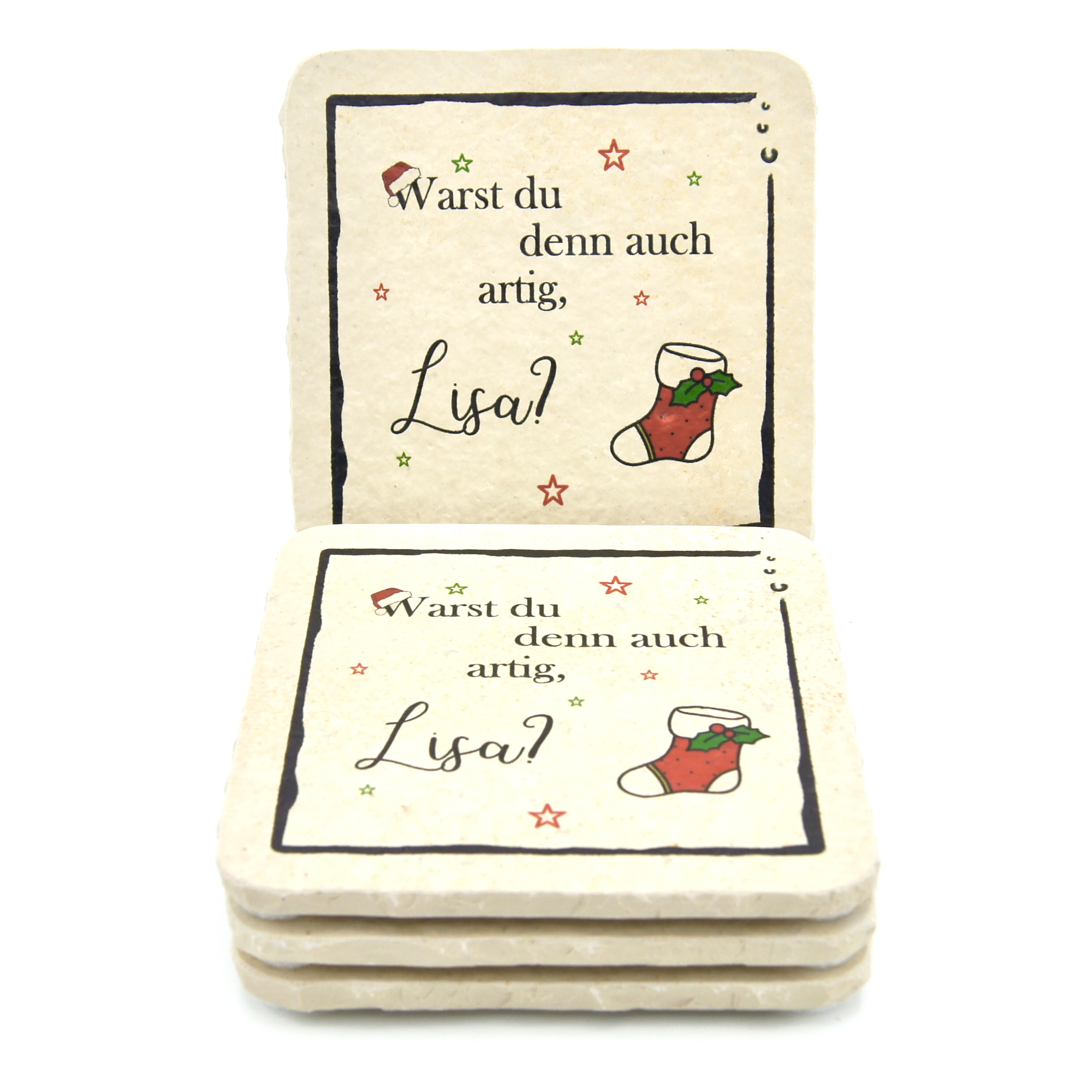 Weihnachten Socke personalisierbar – Natursteinuntersetzer