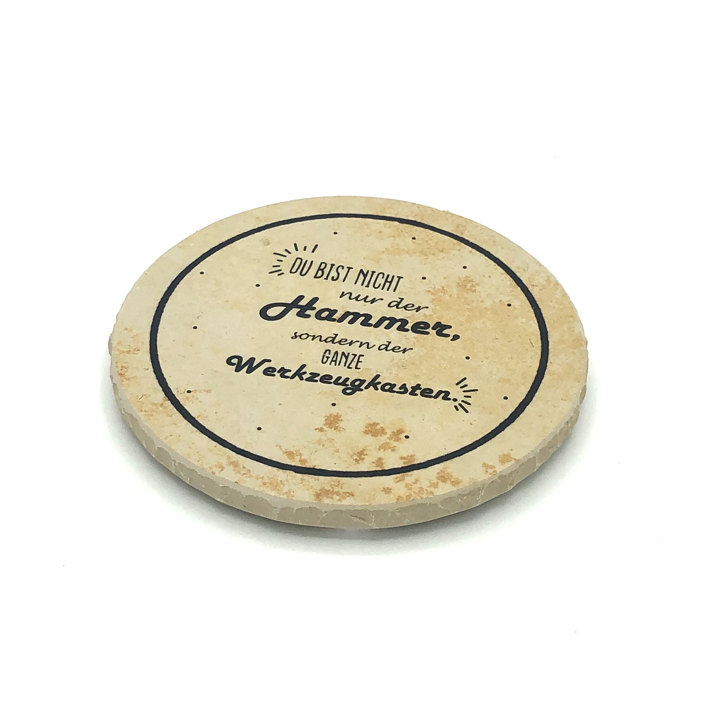 Fanartikel Steinuntersetzer handgefertigt in Bayern, Natursteinuntersetzer aus Bayern, Regional hergestellte Steinbierdeckel, rein biologischer Solnhofer Naturstein, nachhaltiger Glasuntersetzer, multifunktionales Wohnaccessoire, praktisch beschichtet, daher gesundheitlich unbedenklich, Mit Filzgleitern auf der Unterseite ausgestattet um Kratzer auf Oberflächen zu vermeiden. Alternative zu Bierdeckel Valentinstag