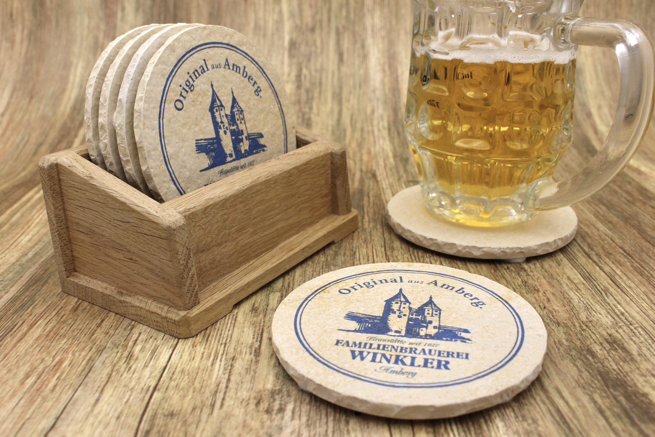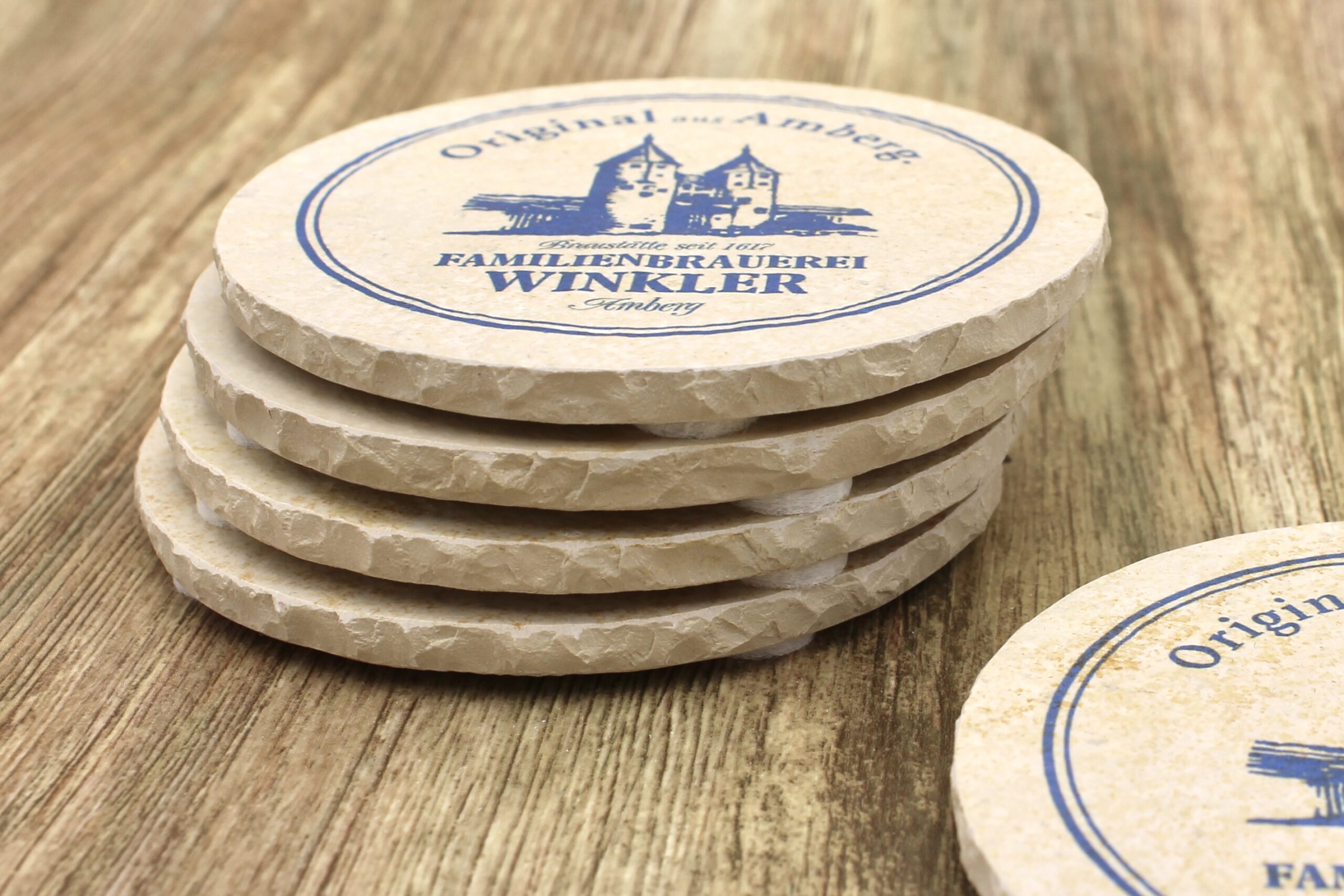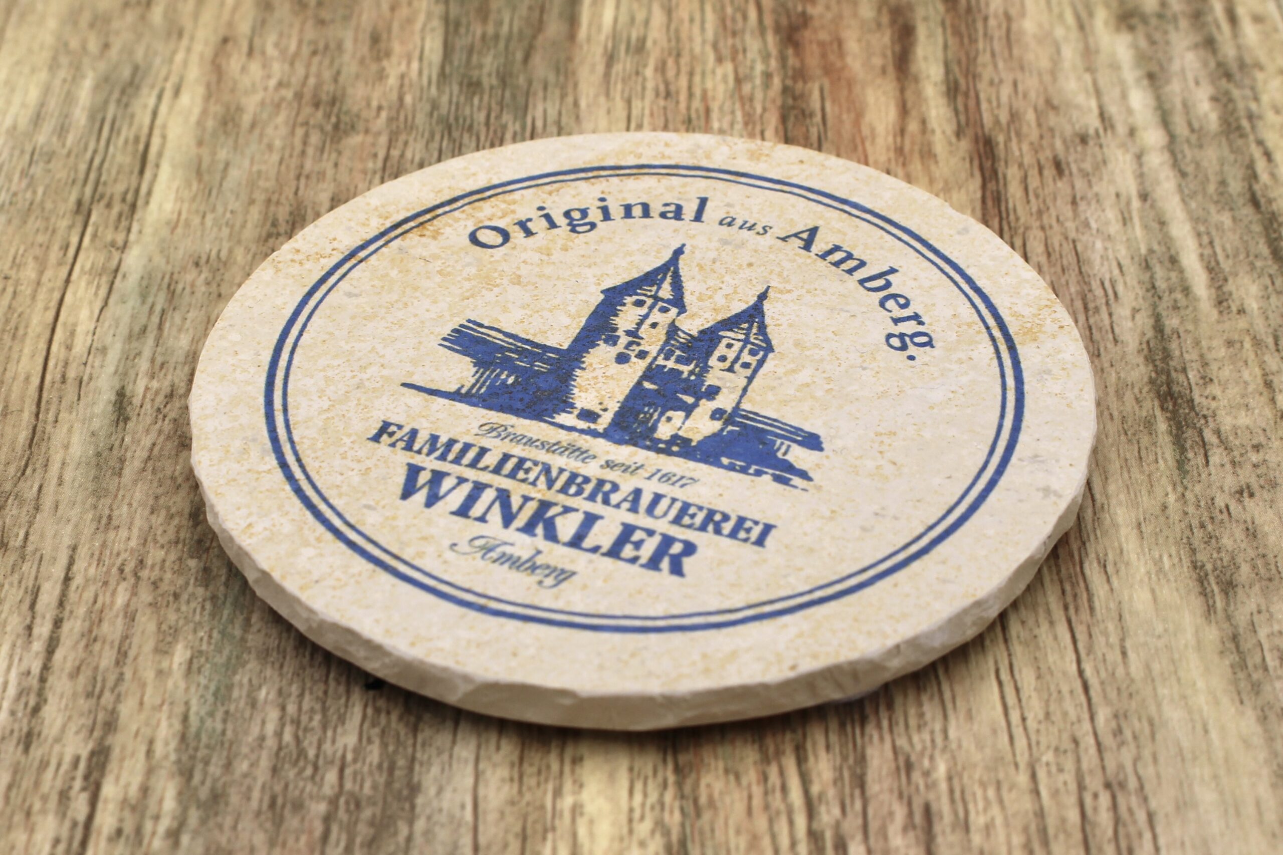 Bierdeckel aus Naturstein mit Logo der Brauerei Winkler in Amberg ✓ Dein Fützl: perfekt als Geschenk & Fanartikel & für Sammler ✓ Echt biologisch: Aus Solnhofer Naturstein handgemacht in Bayern ➨ Jetzt bestellen!