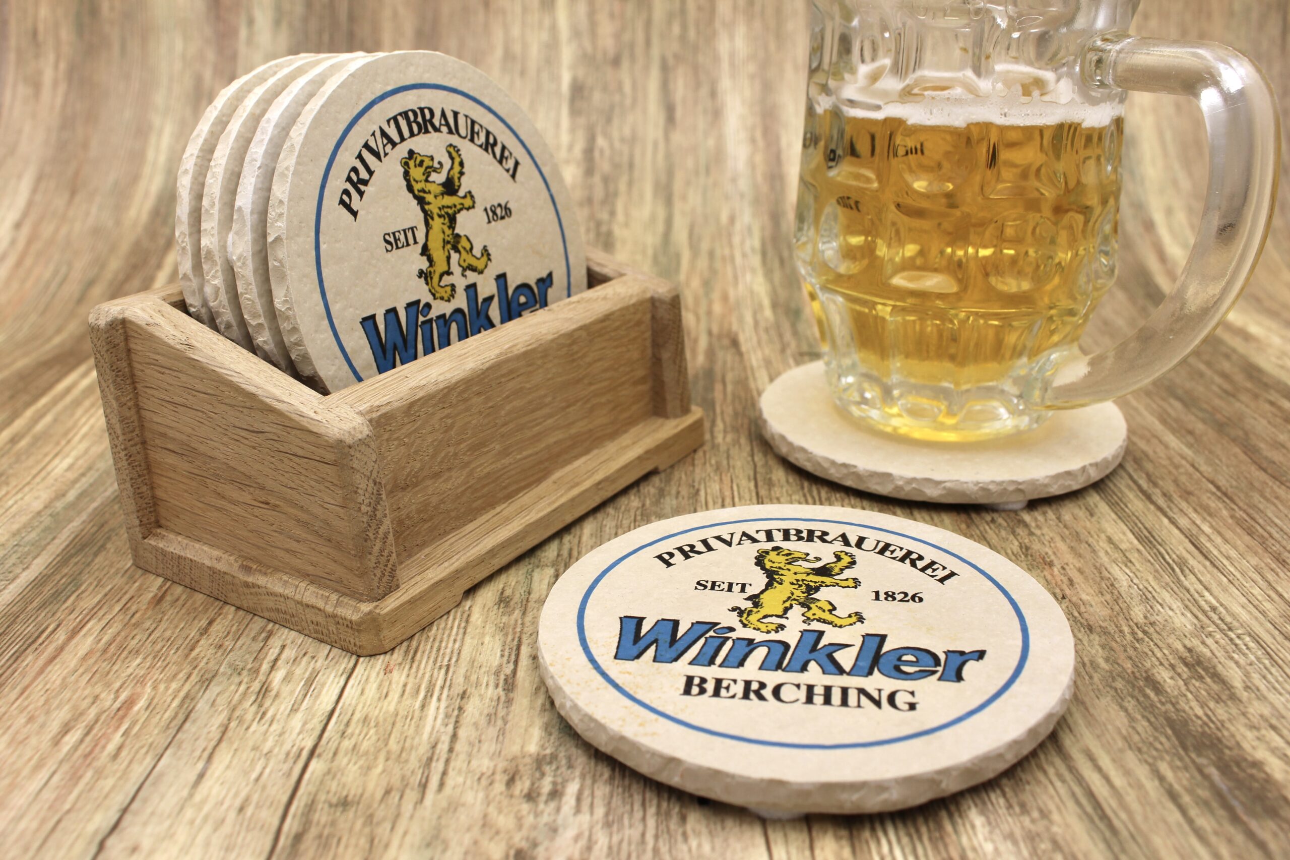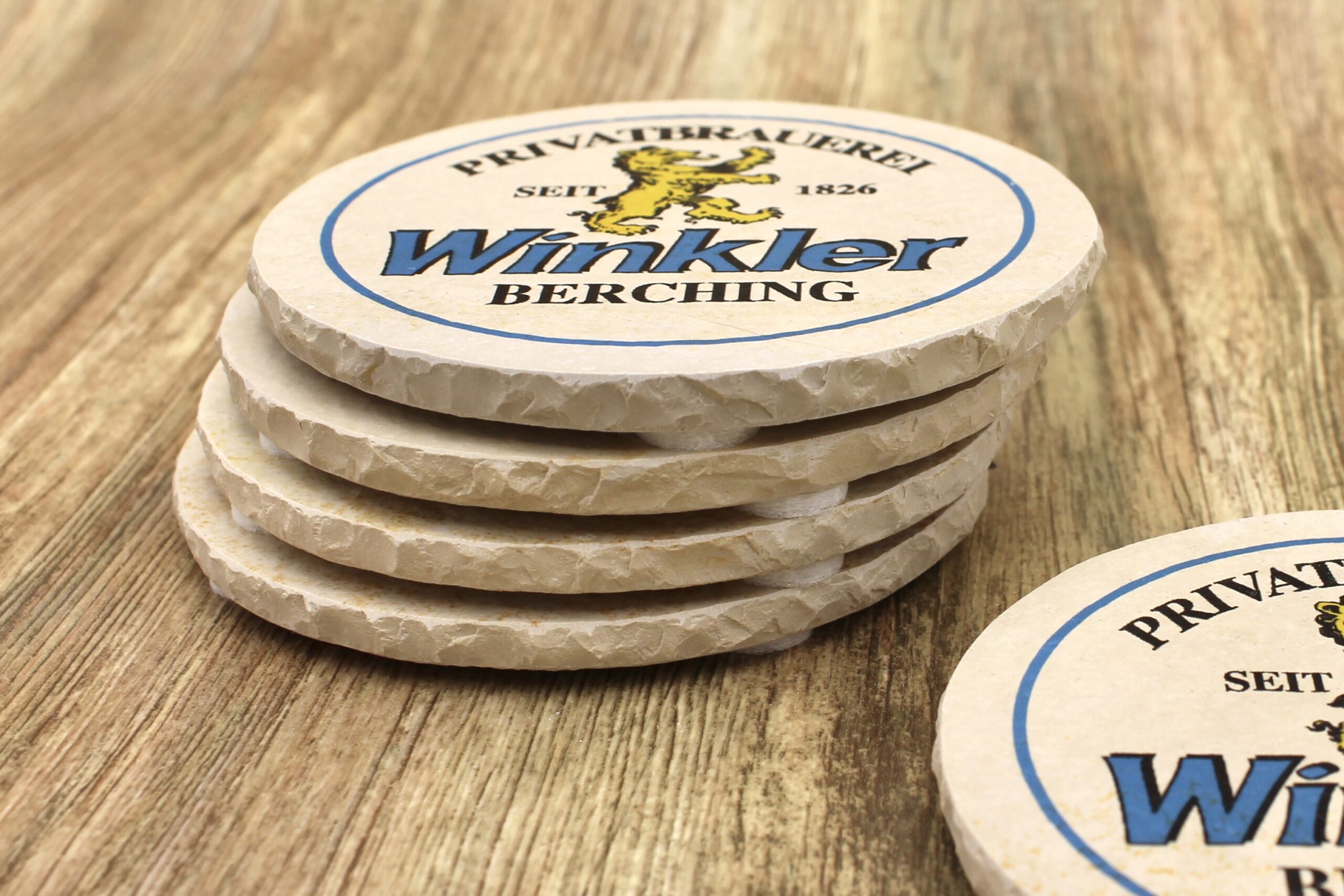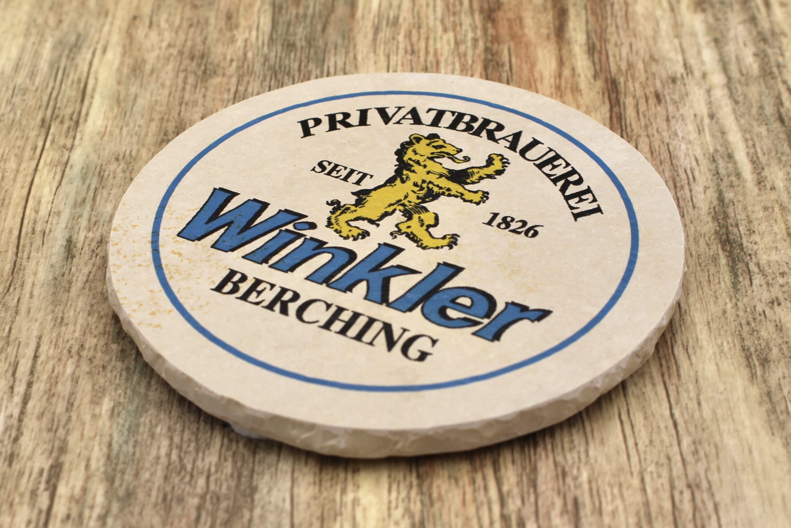 Bierdeckel aus Naturstein mit Logo der Brauerei Winkler in Berching ✓ Dein Fützl: perfekt als Geschenk & Fanartikel & für Sammler ✓ Echt biologisch: Aus Solnhofer Naturstein handgemacht in Bayern ➨ Jetzt bestellen!