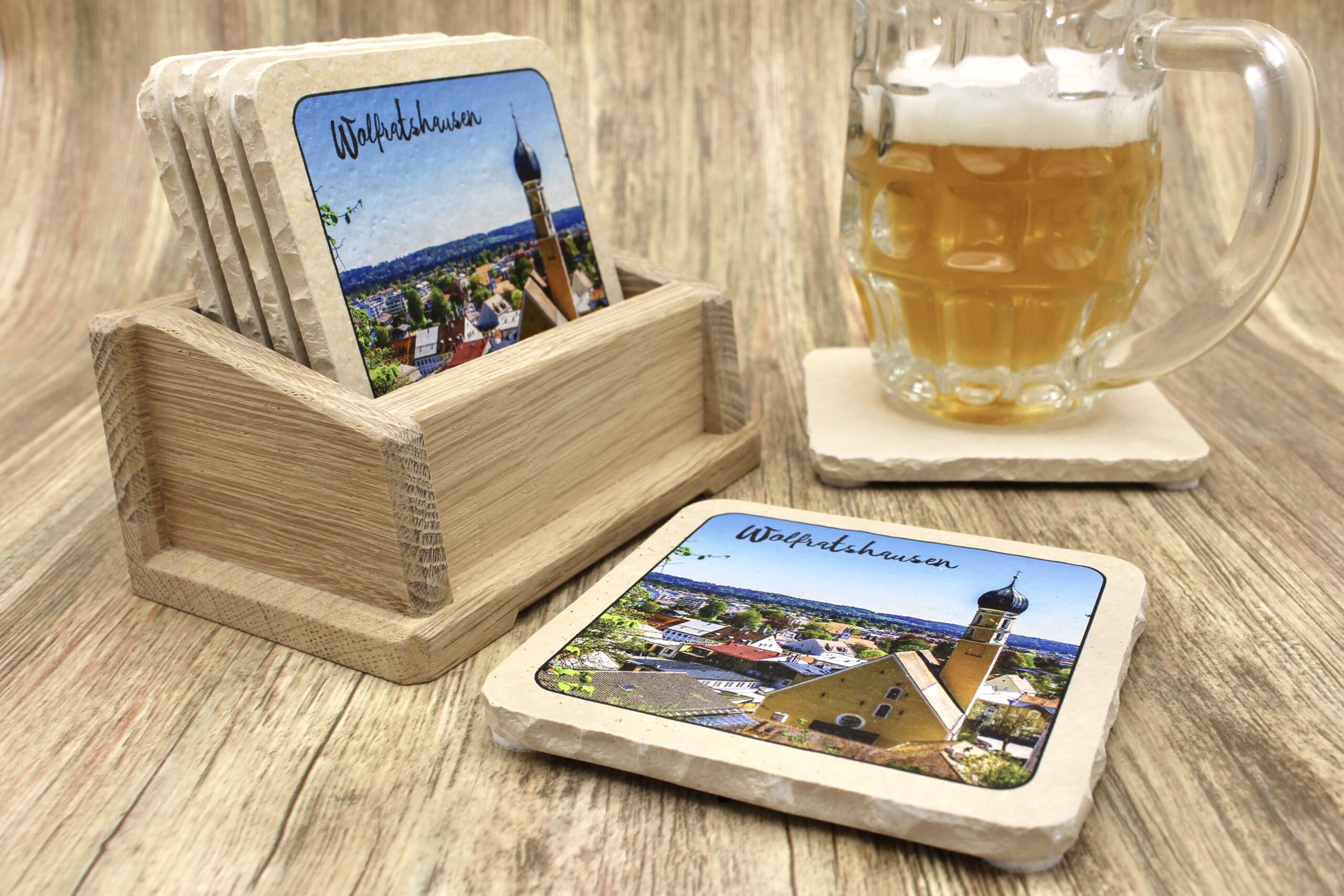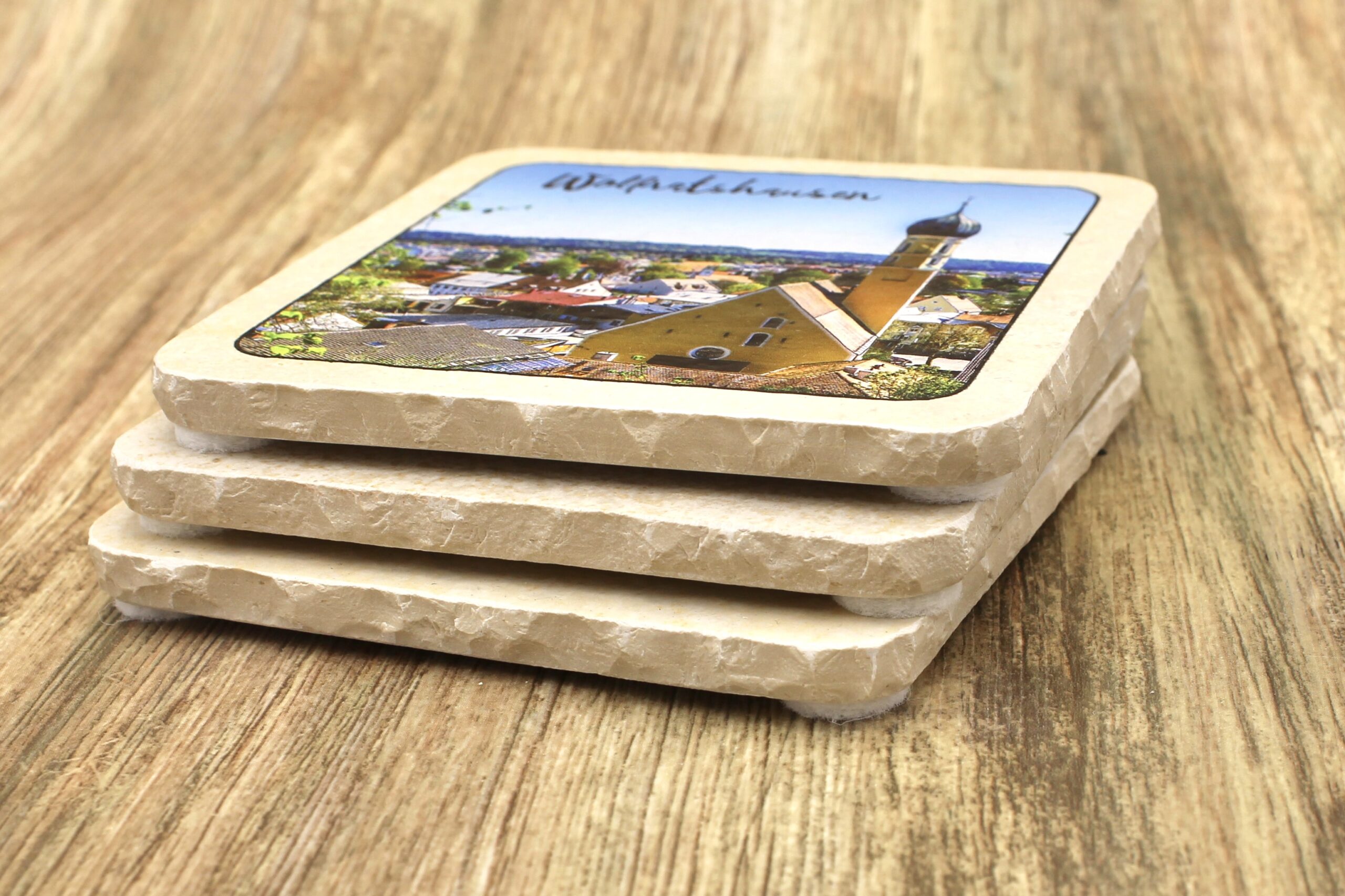 Untersetzer aus Naturstein mit dem Motiv Wolfratshausen ✓ Dein Fützl: perfekt als Geschenk & Fanartikel & für Sammler ✓ Echt biologisch: Aus Solnhofer Naturstein handgemacht in Bayern ➨ Jetzt bestellen!