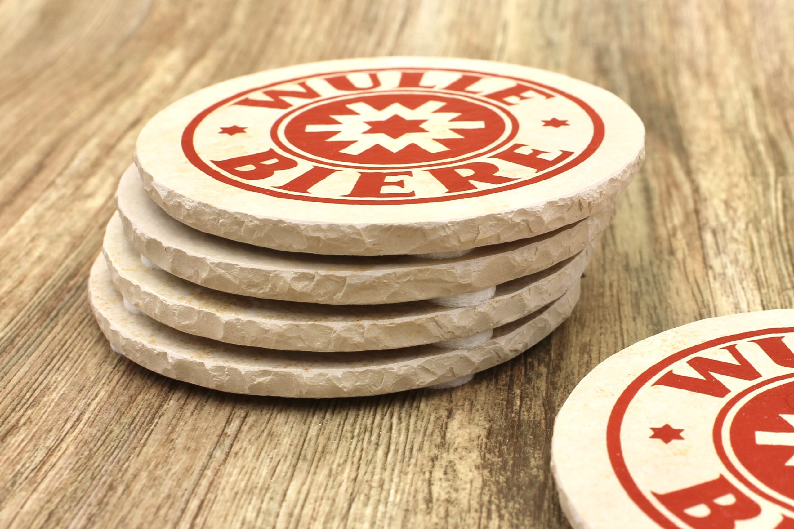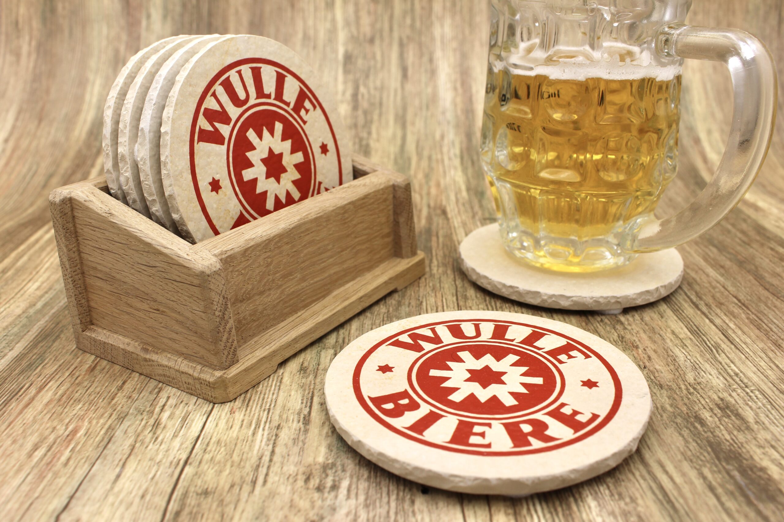 Bierdeckel aus Naturstein mit dem Logo von Wulle Biere ✓ Dein Fützl: perfekt als Geschenk & Fanartikel & für Sammler ✓ Echt biologisch: Aus Solnhofer Naturstein handgemacht in Bayern ➨ Jetzt bestellen!