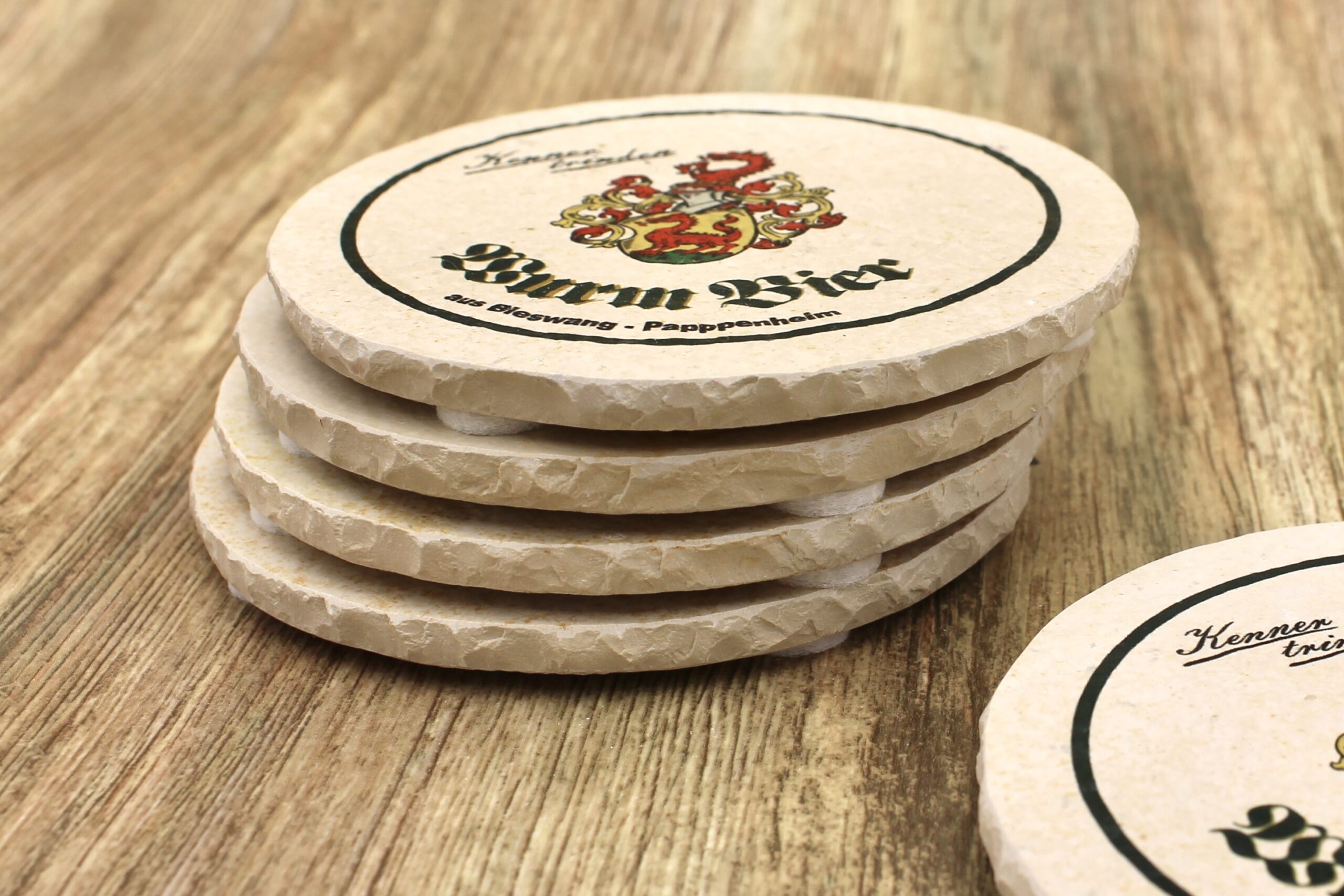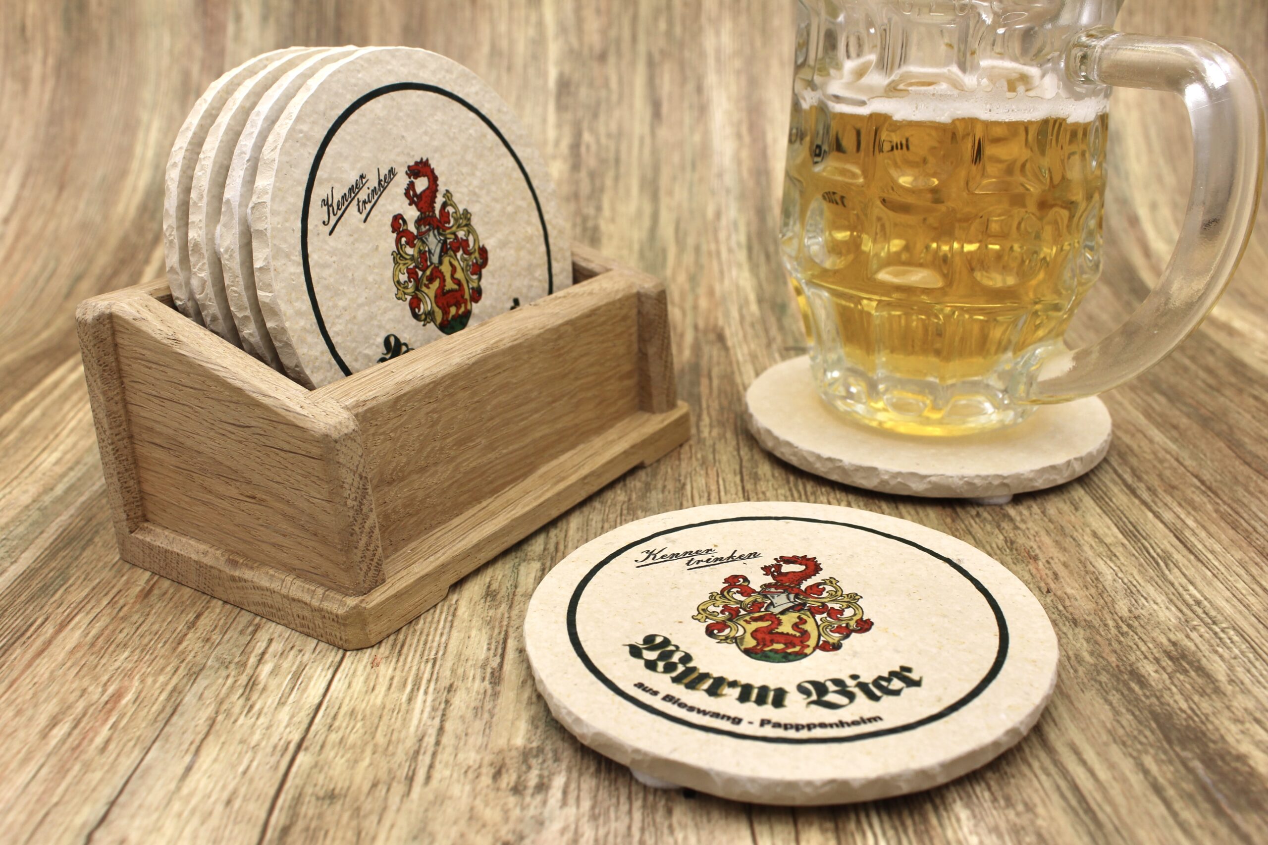 Bierdeckel aus Naturstein mit Logo der Brauerei Wurm aus Bieswang ✓ Dein Fützl: perfekt als Geschenk & Fanartikel & für Sammler ✓ Echt biologisch: Aus Solnhofer Naturstein handgemacht in Bayern ➨ Jetzt bestellen!