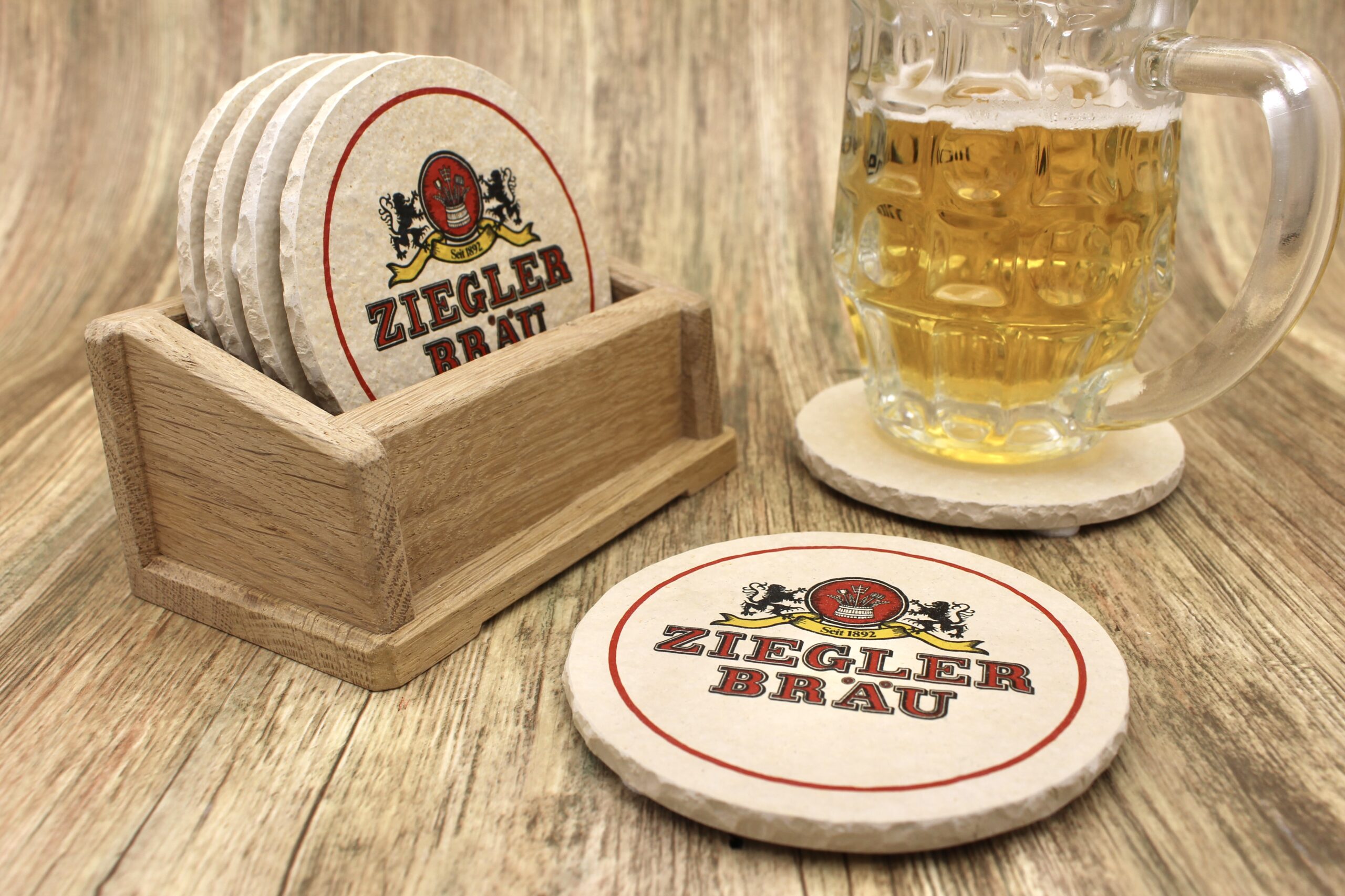 Bierdeckel aus Naturstein mit Logo vom Zieglerbräu aus Mainburg ✓ Dein Fützl: perfekt als Geschenk & Fanartikel & für Sammler ✓ Echt biologisch: Aus Solnhofer Naturstein handgemacht in Bayern ➨ Jetzt bestellen!